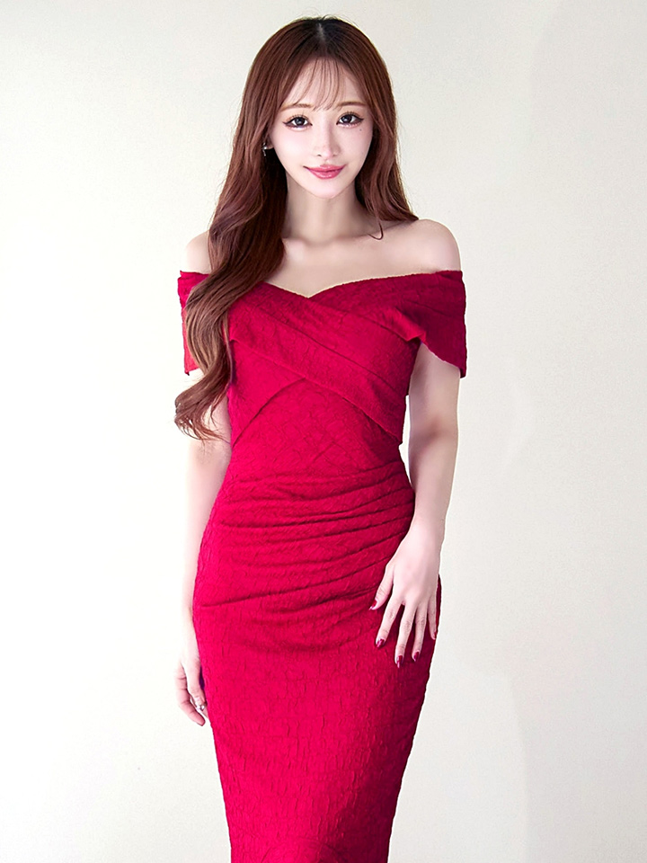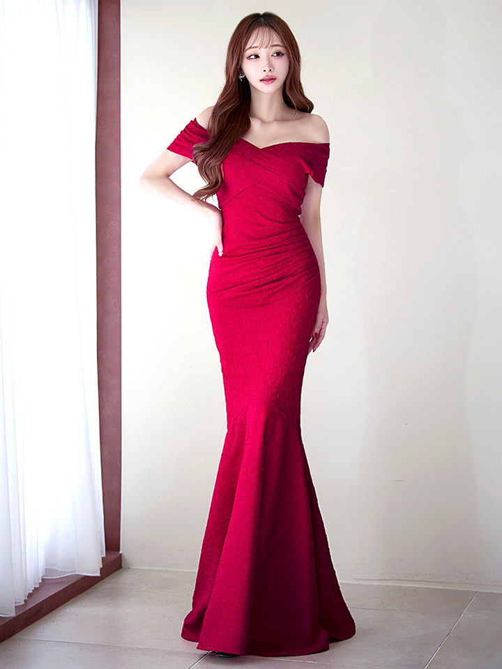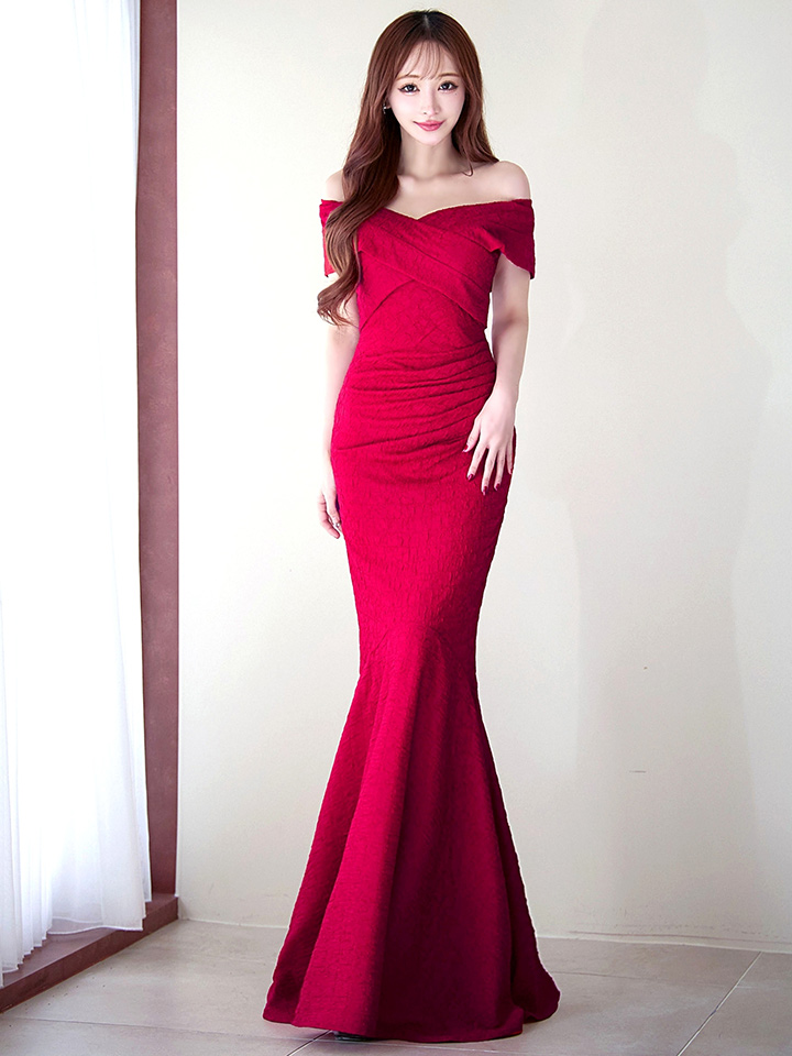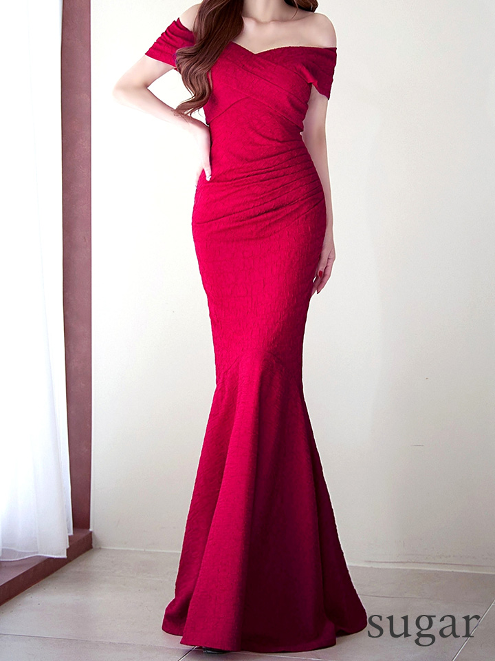 大胆なオフショルデザインが目を惹くマーメイドロングドレス♡