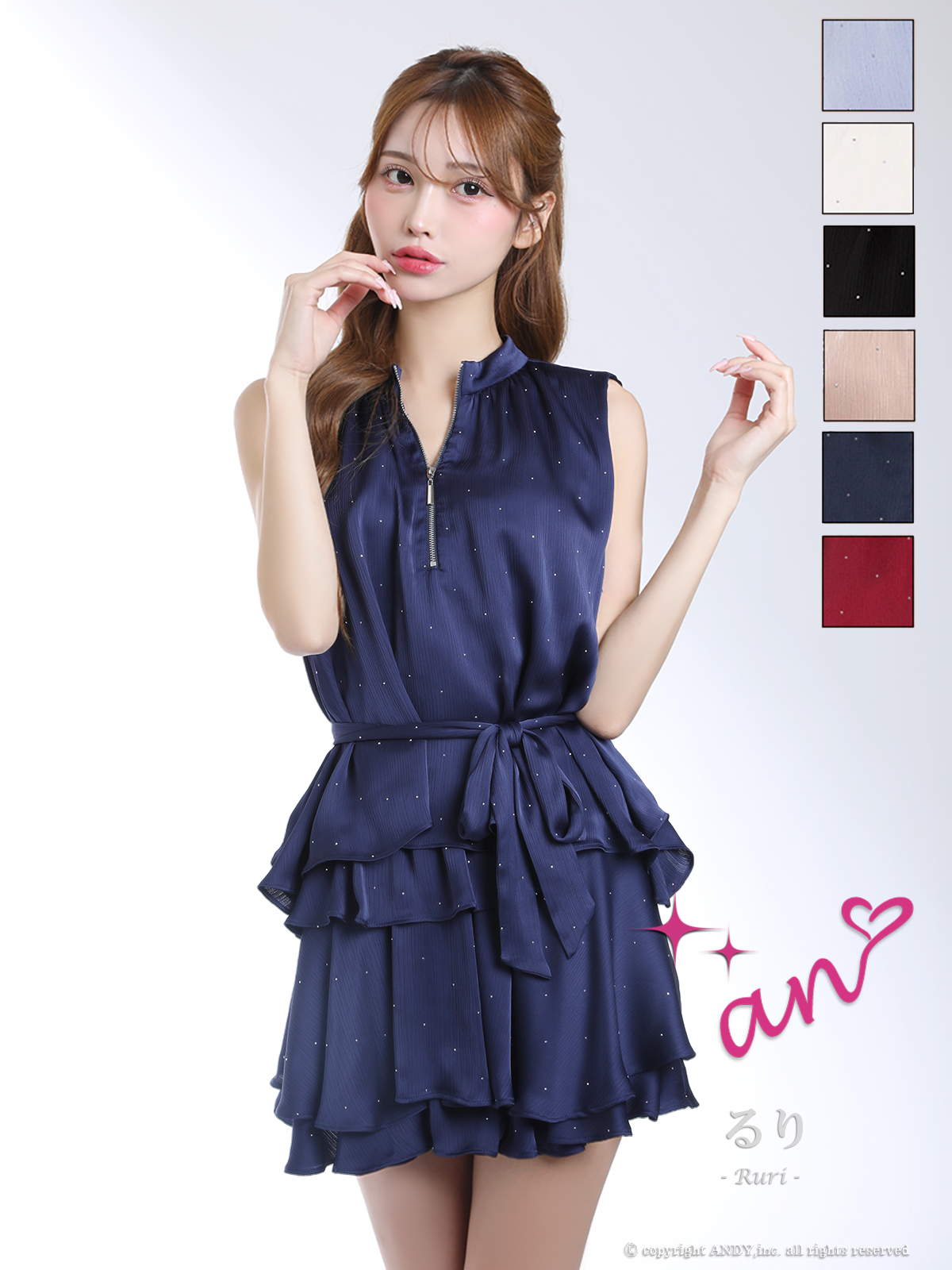 - > XSサイズあり【an /アン】ハイネック/ バストジップ/ ノースリーブ/ リボンベルト/ ティアード/ フリル/ フレア/ ラインストーン/ ミニドレス/ キャバドレス[OF05]