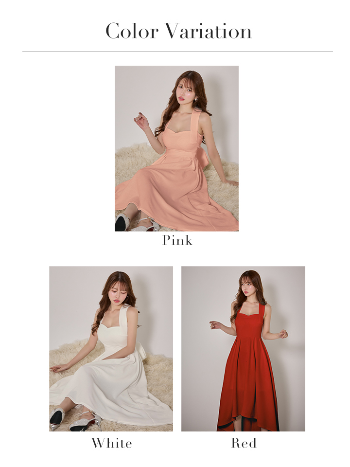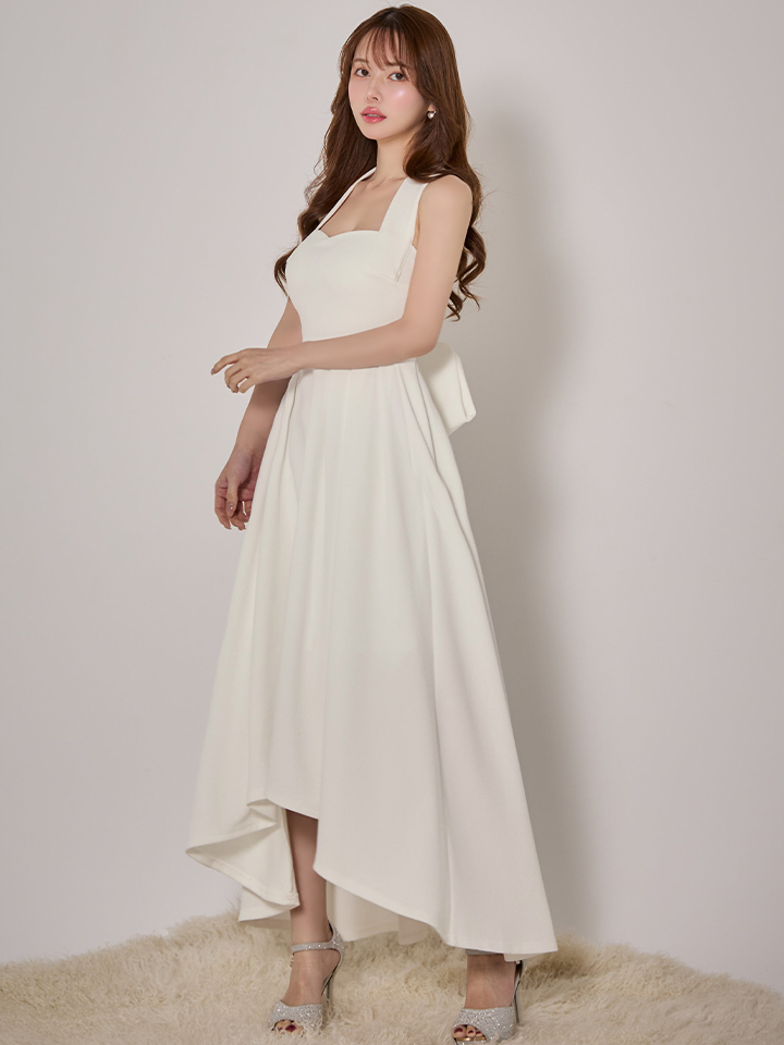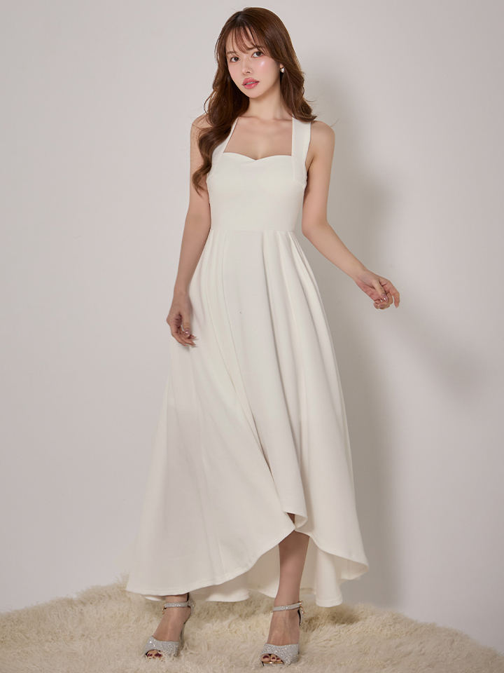 大きく開いたネックデザインがデコルテを美しく強調させるミディアムフレアドレス♡