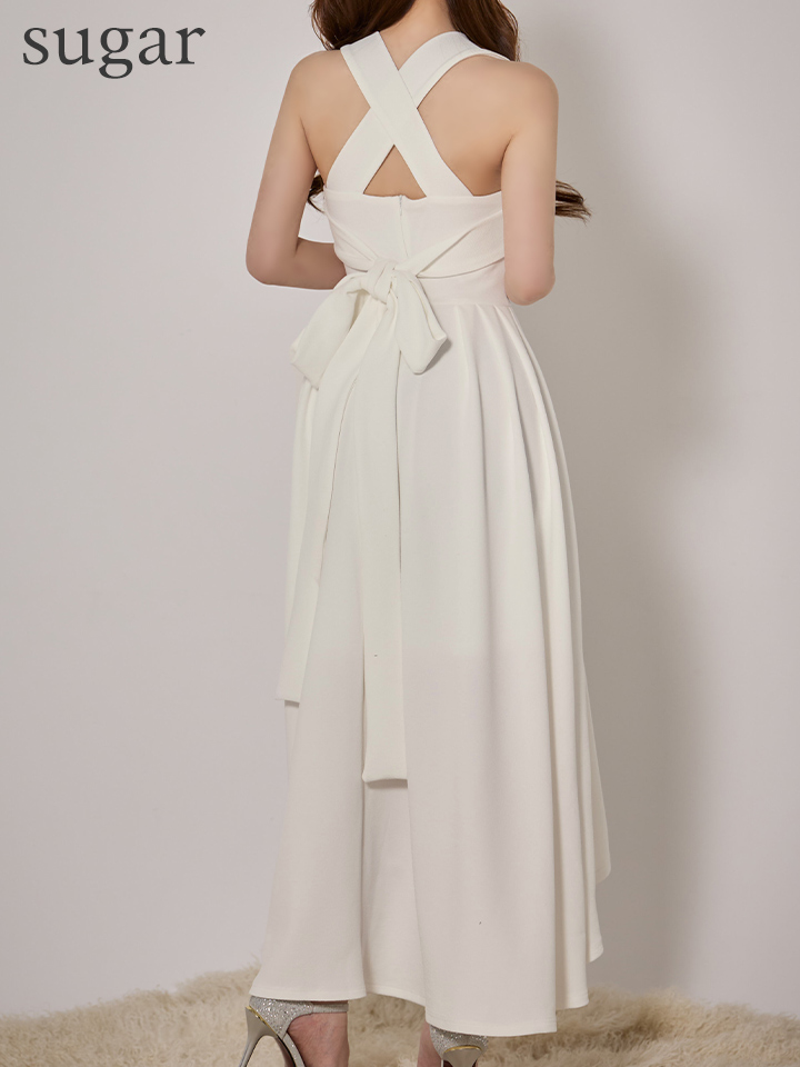 - > 【MONOQLO/モノクロ】ウエストクロス/ ワンカラー/ ヘムスカート/ ノースリーブ/ ストレッチ/ フレア/ ワンピース/ ロングドレス/ キャバドレス/ long[OF05]