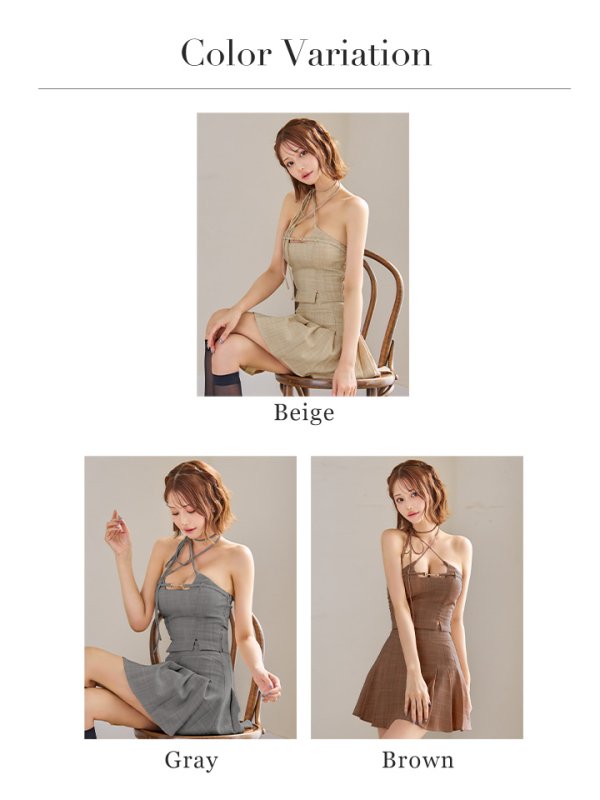 XSサイズあり【ANGEL R/エンジェルアール】クロスストラップ/ バストチャーム/ チェック/ プリーツ/ セパレート/ フレア/ マイクロミニドレス/ キャバドレス[OF2] [AR25856-BE-S251220]