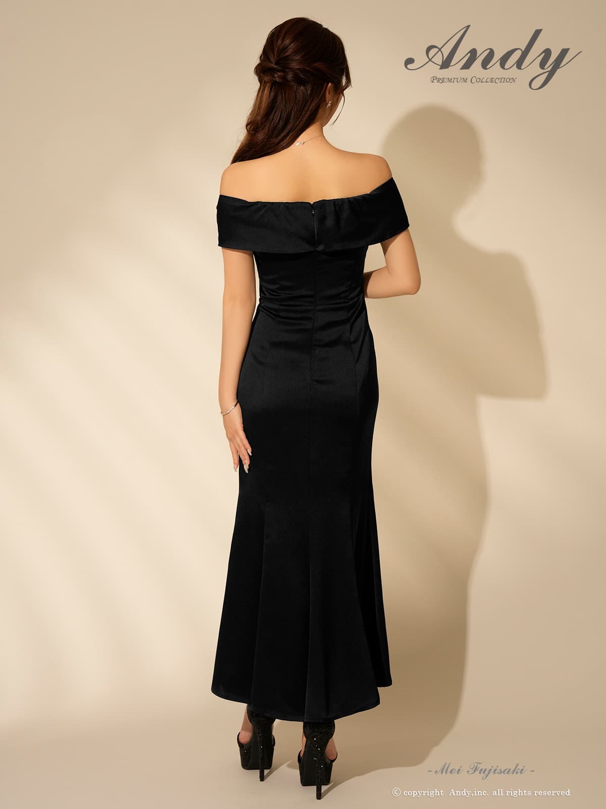 【ANDY/アンディ】バストジップ/ スリット/ オフショル/ フリル/ シンプル/ マーメイド/ ミモレ丈/ ミディアムドレス/ キャバドレス[OF05]