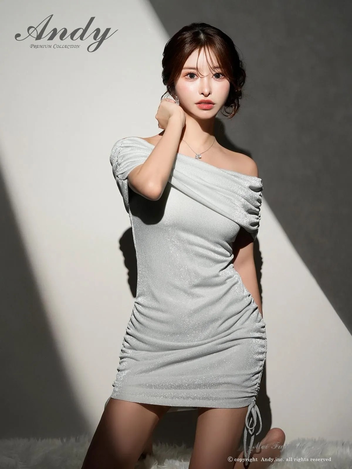 - > XSサイズあり【Andy /アンディ】 ラメ/ ストレッチ/ オフショル/ サイドリボン/ タイト/ ミニドレス/ キャバドレス[OF05]