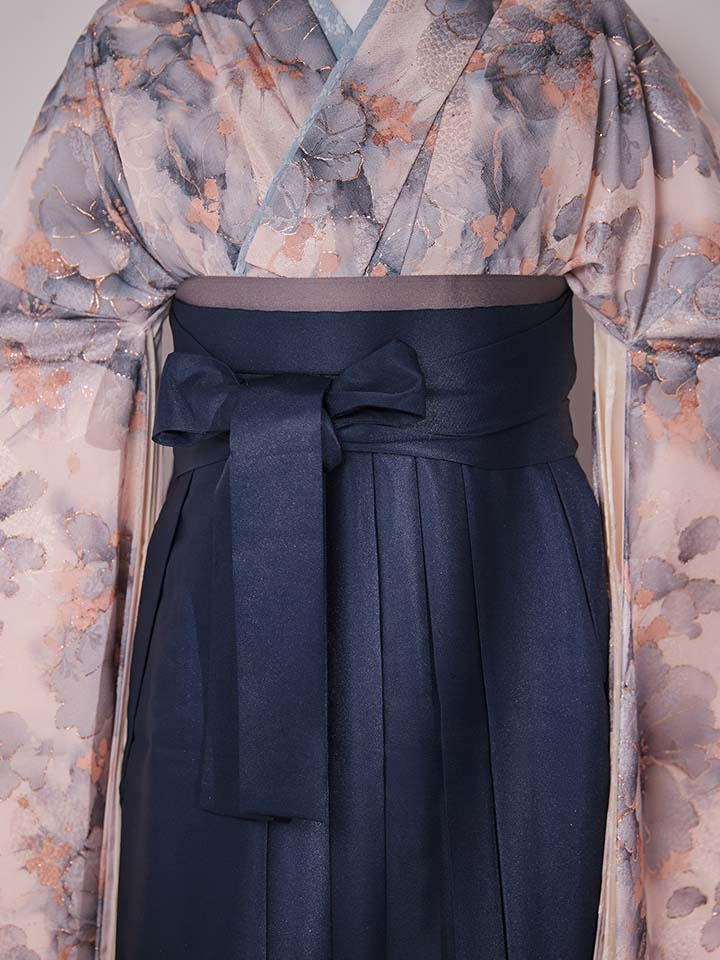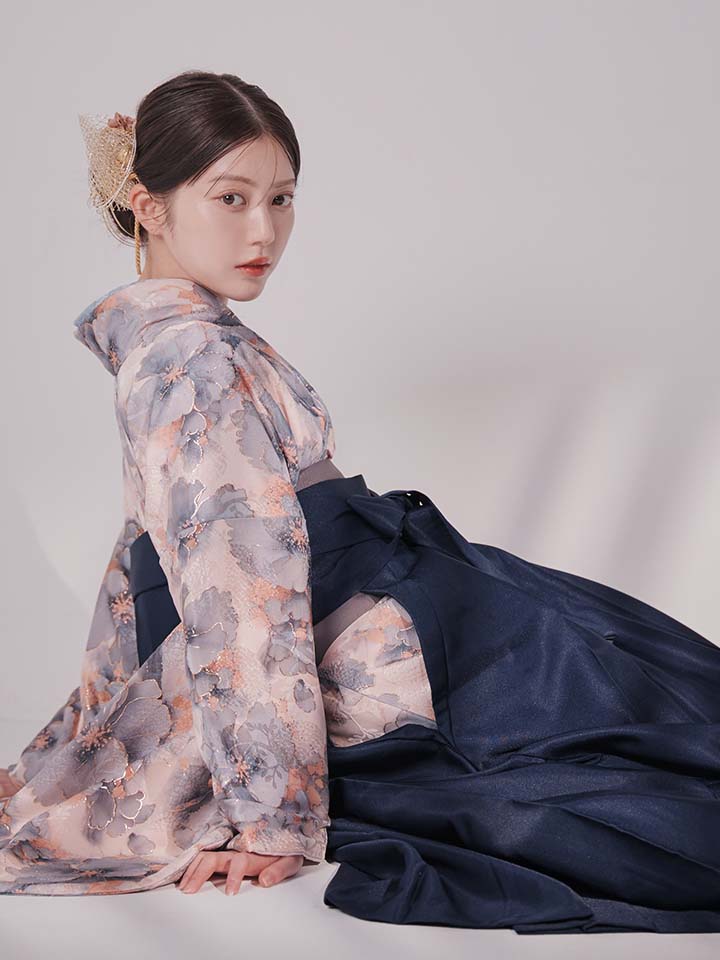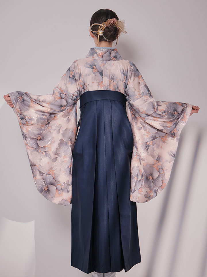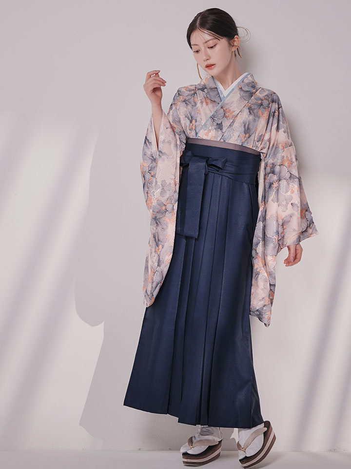【予約商品 / 1月中旬発送予定】グレーピンクフラワー グラデーション二尺袖着物【卒業袴3点セット 二尺袖着物/帯/袴】
