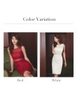 - > XS-Lサイズあり【SETTAN/セッタン】フラワー刺繍/ レース/ ウエストリボン/ ノースリーブ/ Vネック/ 膝丈/ タイト/ ミディアムドレス/ キャバドレス[OF2]