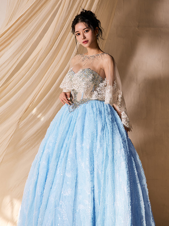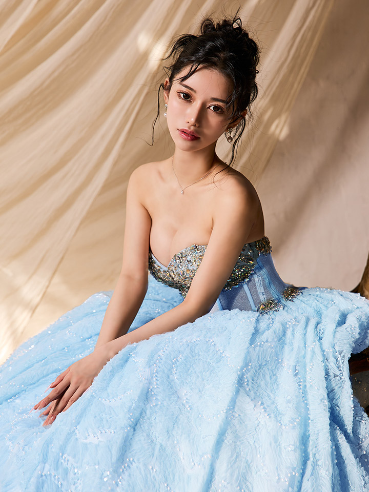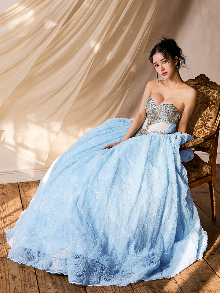 贅沢なビジュー使いが高級感溢れるプリンセス仕様のウエディングドレス。