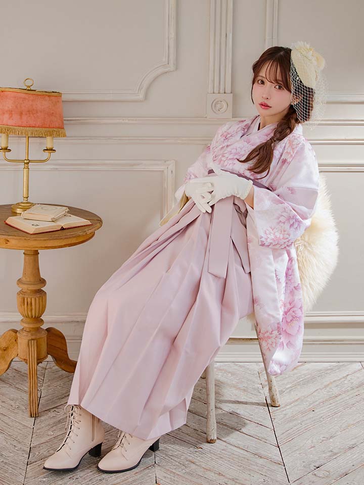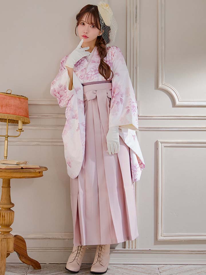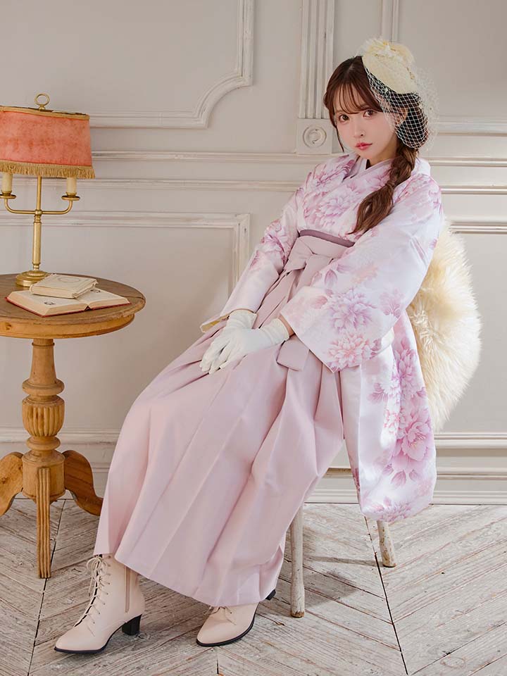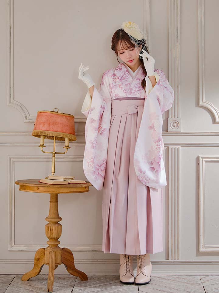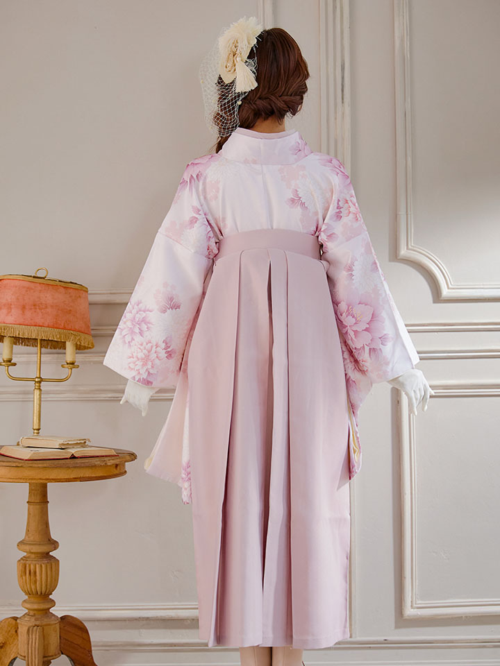 【即日発送】ピンク牡丹×菊 ペールピンク二尺袖着物【卒業袴3点セット 二尺袖着物/帯/袴】[FB01] [HR-102-ok-P-F-25MY-251229]
