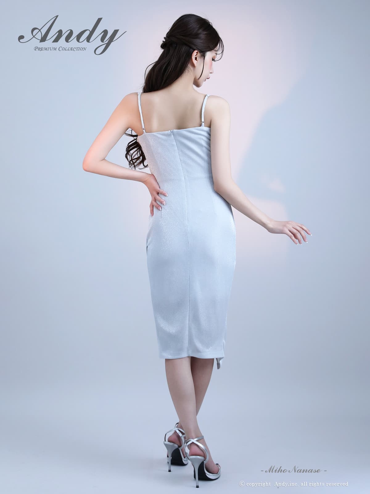 XSサイズあり【ANDY/アンディ】バストドレープ/ ワンカラー/ ラメニット/ キャミ/ タック/ タイト/ ミディアムドレス/ キャバドレス[OF05] [ON3048-SV-2512]
