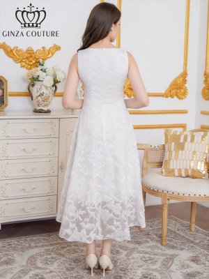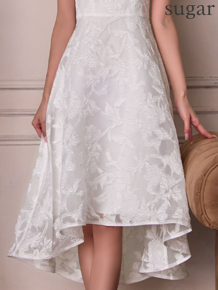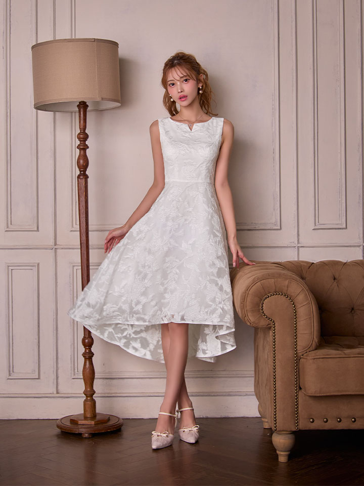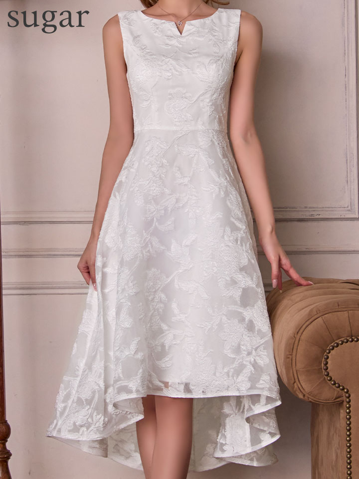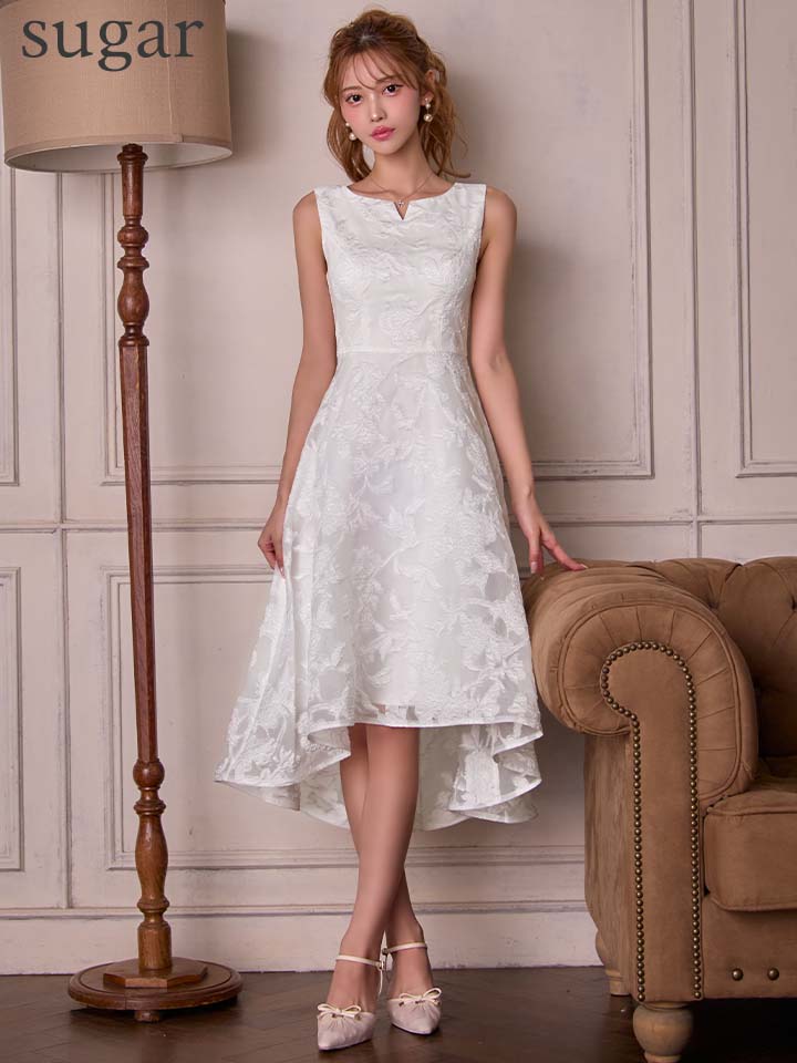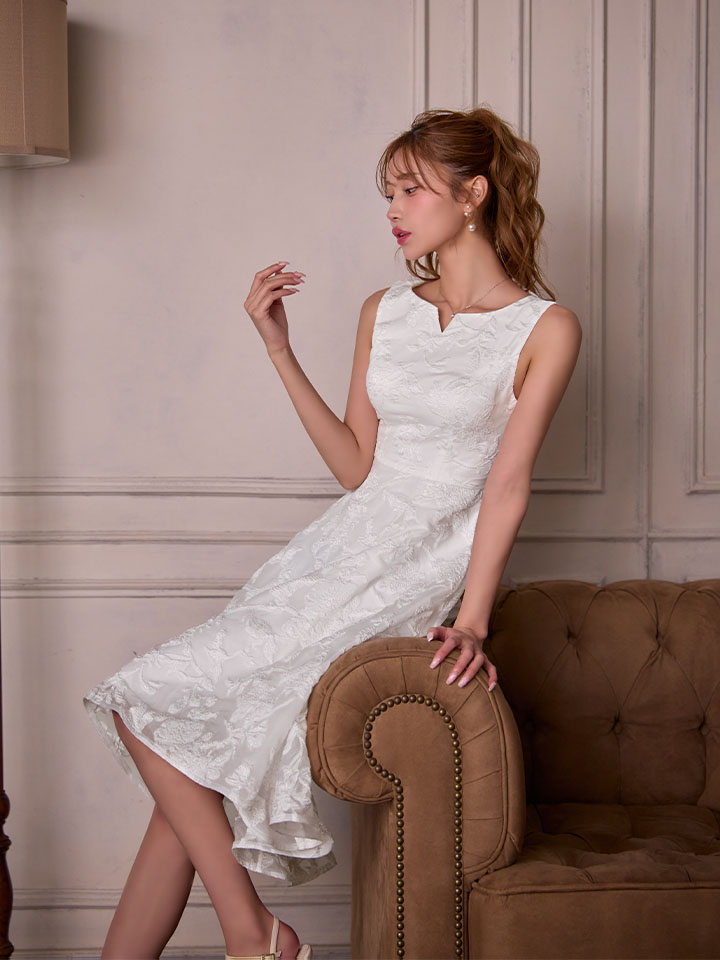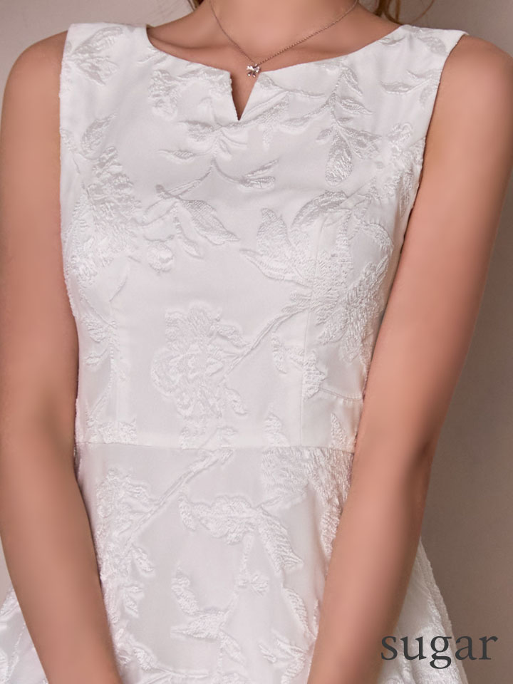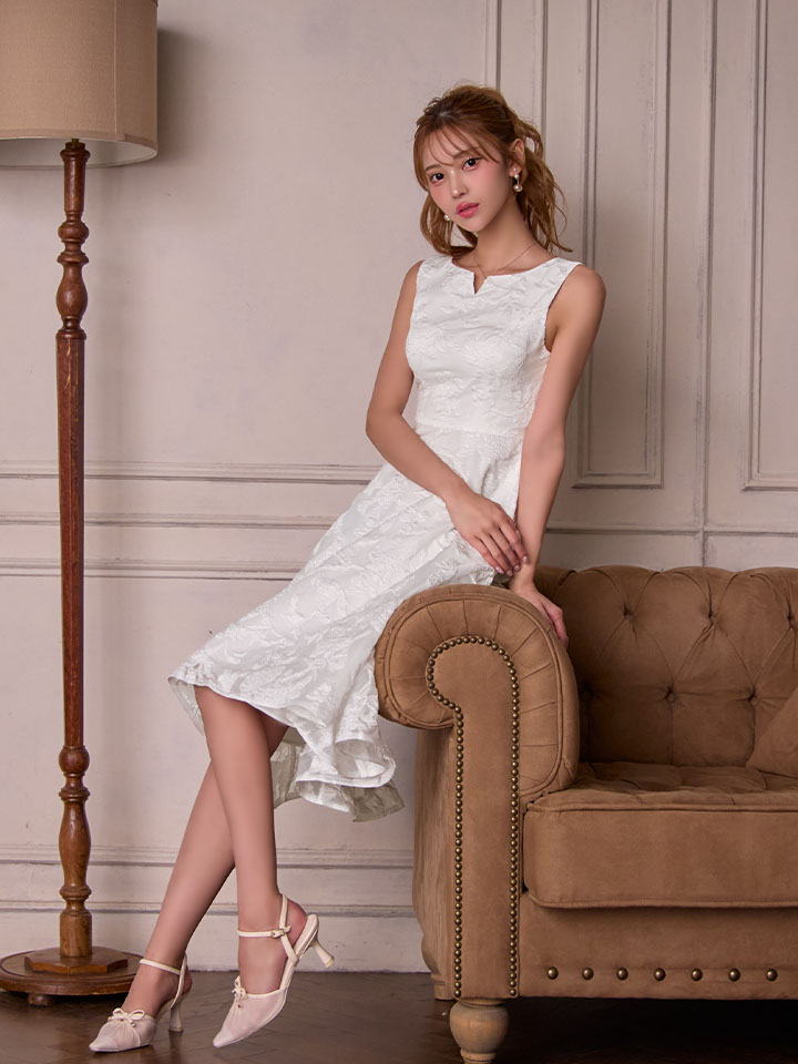 XS-Lサイズあり【ERUKEI エルケイ】ジャガード/ 花柄/ スリットネック/ ノースリーブ/ フィッシュテール/ Aライン/ ミディアムドレス/ フレア/ ワンピース/ ミニドレス/ キャバドレス[OF2] [LKC25075-W-S2512]