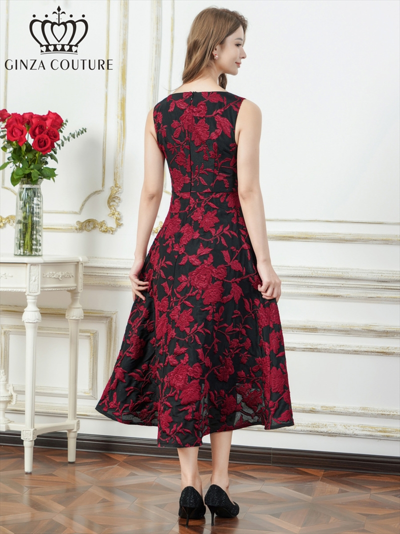 - > XS-Lサイズあり【ERUKEI エルケイ】ジャガード/ 花柄/ スリットネック/ ノースリーブ/ フィッシュテール/ Aライン/ ミディアムドレス/ フレア/ ワンピース/ ミニドレス/ キャバドレス[OF2]