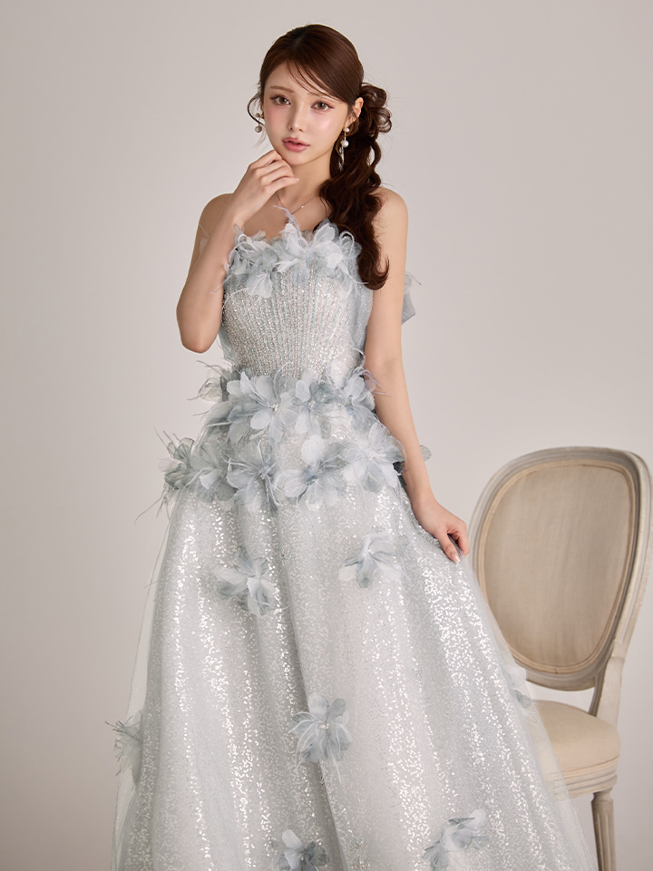 グリッターの輝きが存在感抜群で魅了されるプリンセスロングドレス♡