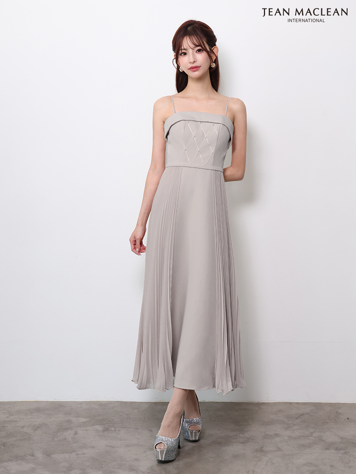 胸元のダイヤ柄デザインとサイドプリーツが上品さをプラス。