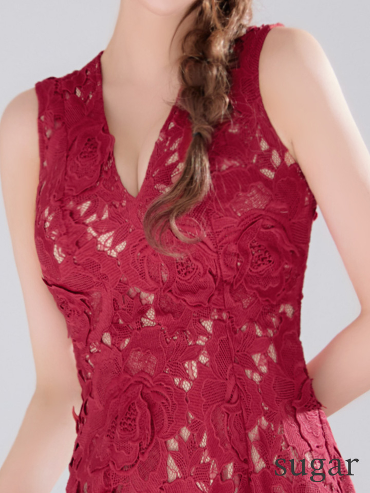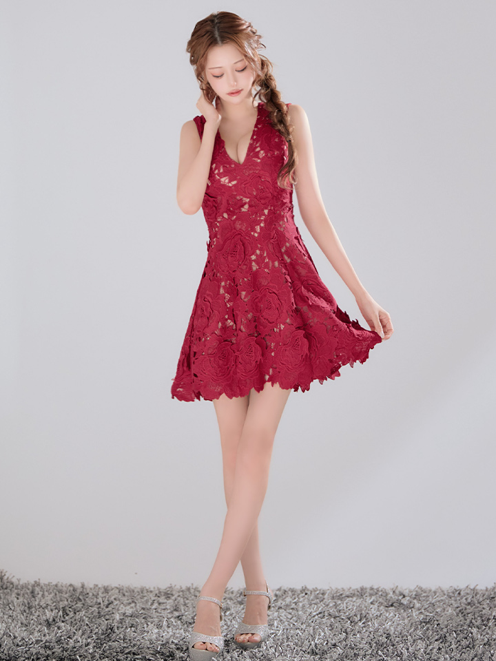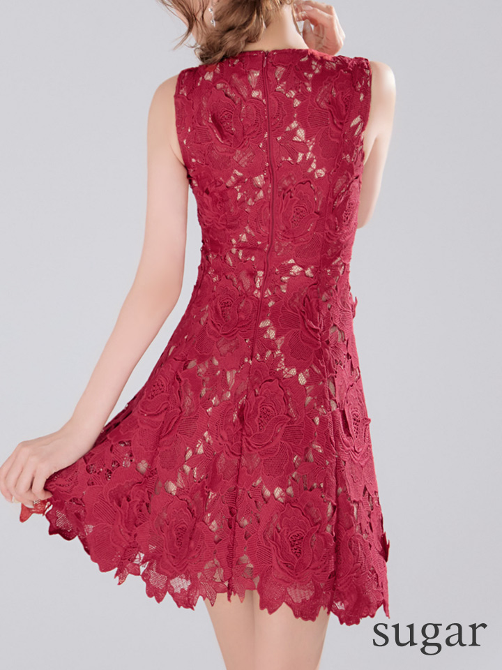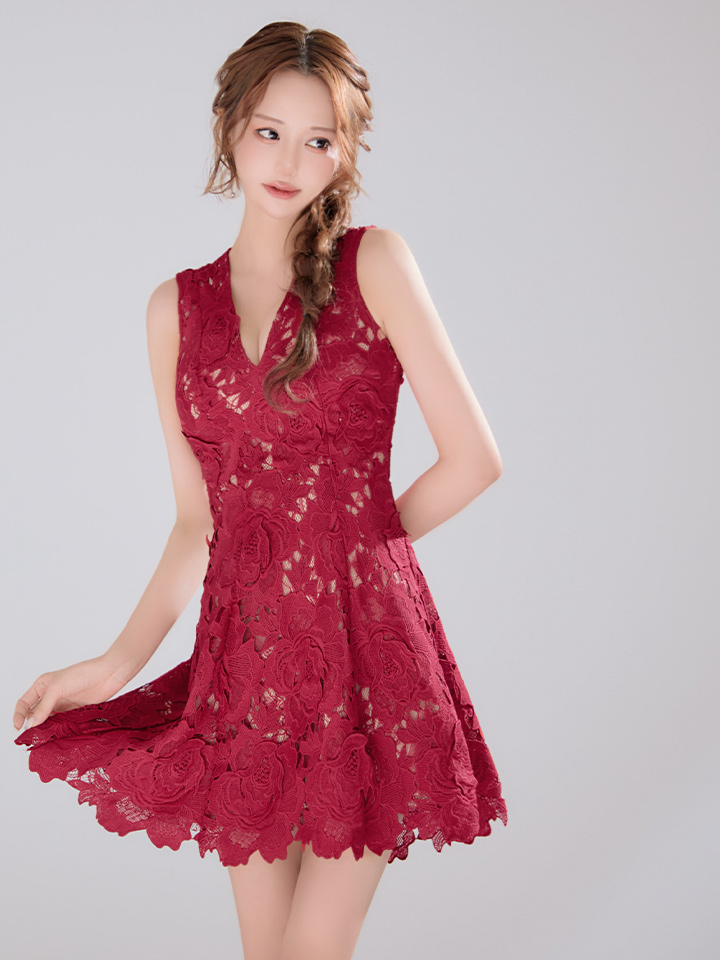 XS-Lサイズあり【ERUKEI エルケイ】フラワーレース/ 総レース/ ノースリーブ/ Vネック/ フレア/ Aライン/ ワンピース/ ミニドレス/ キャバドレス[OF2] [LKE25188-WR-S2512]