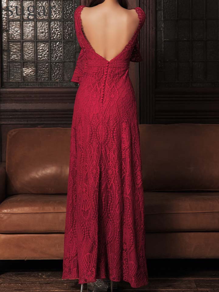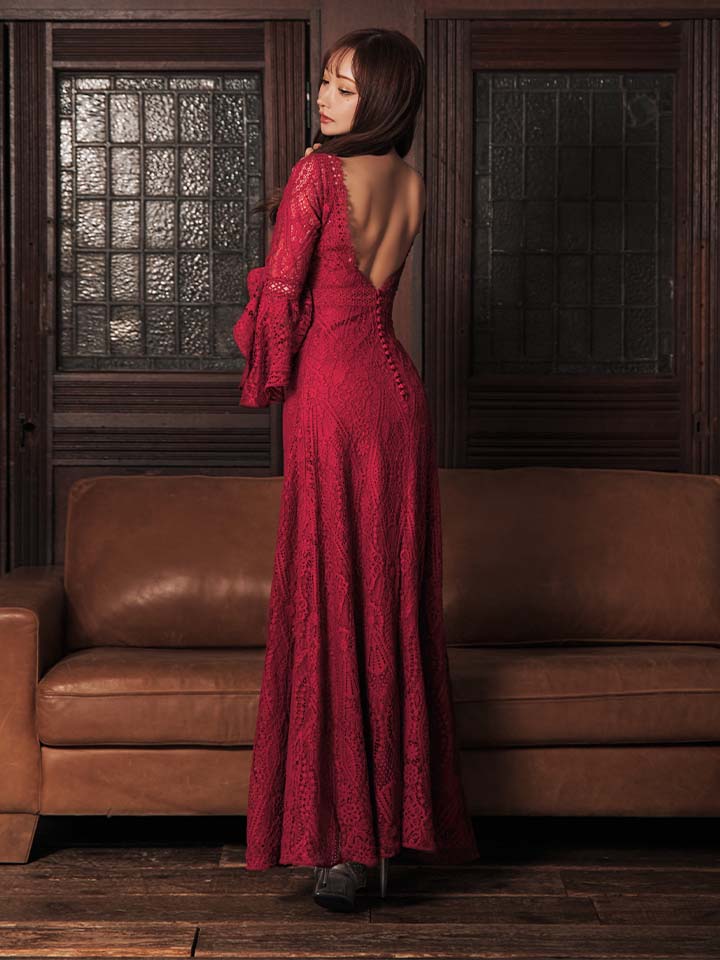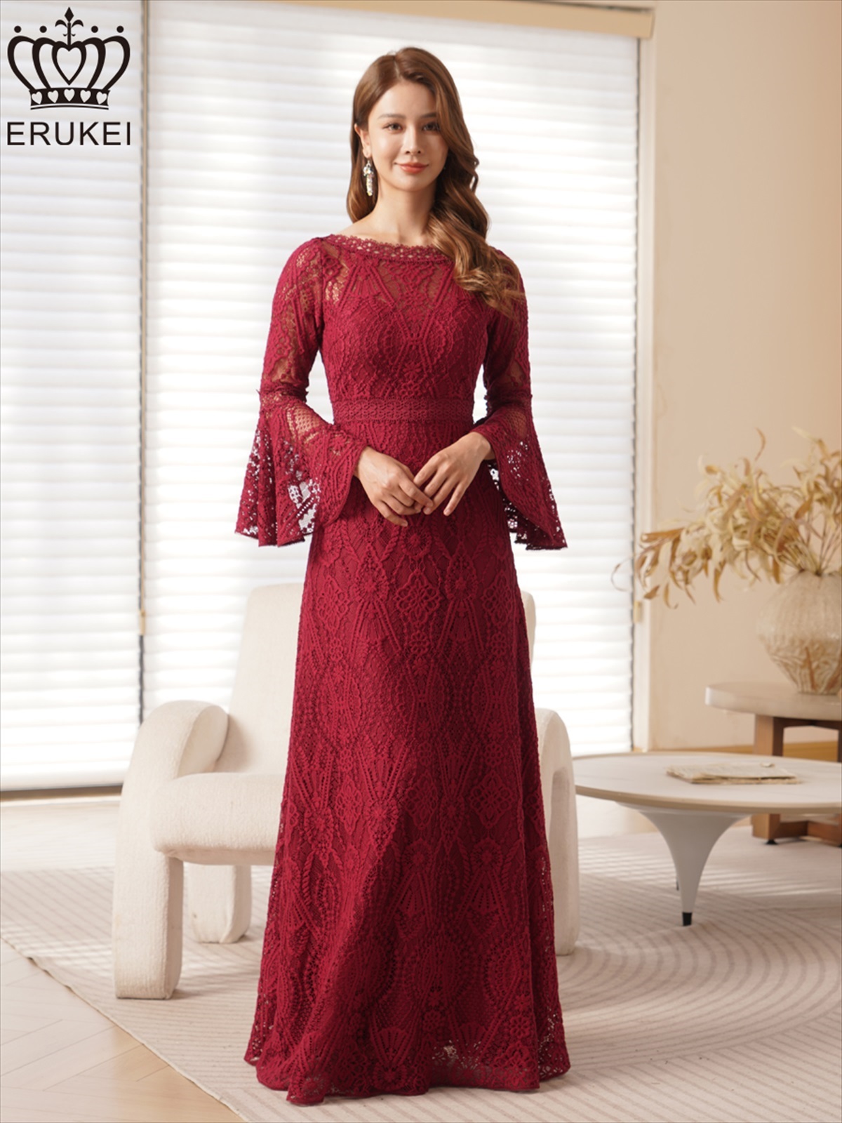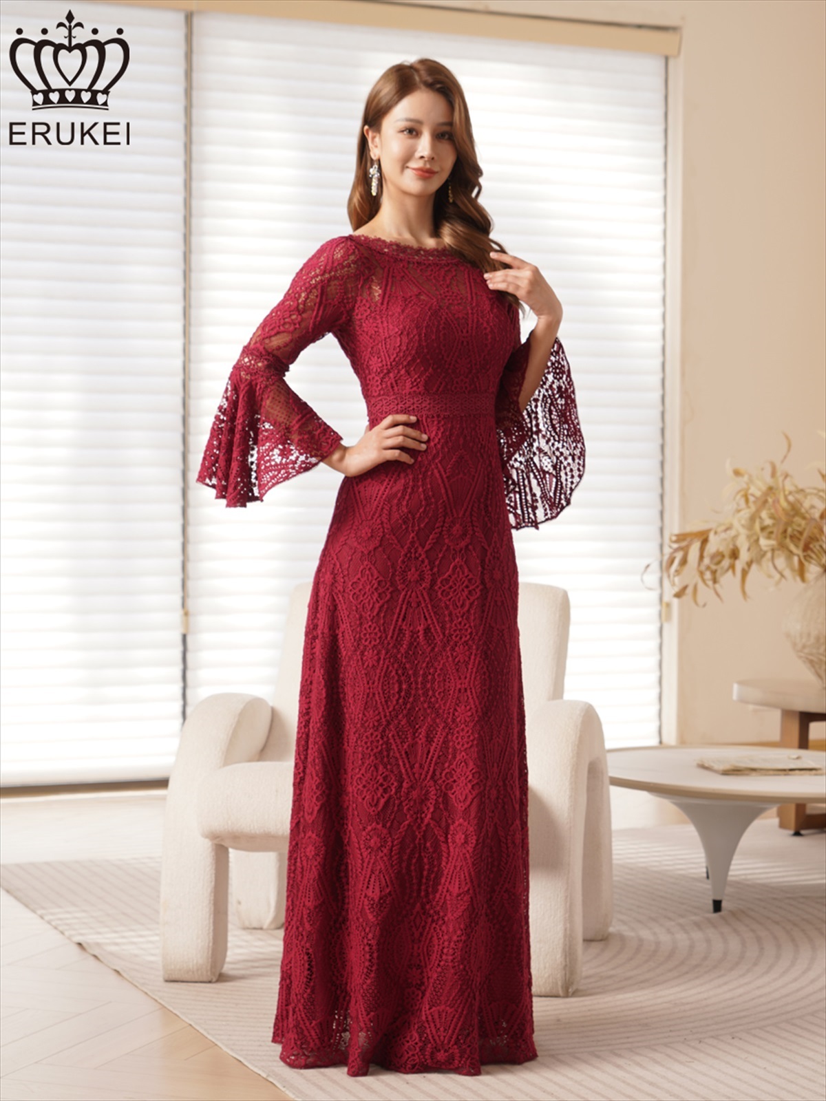 XS-Lサイズあり【ERUKEI エルケイ】 総レース/ ベルスリーブ/ Aライン/ エレガント/ ロングドレス/ キャバドレス[OF2] [LKE24083-WR-S2512]