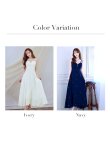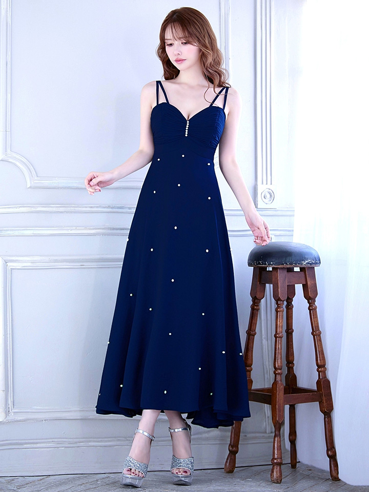 Lサイズあり【ISA FERRIS/ イサフェリス】【OF05】シンプル/ キャミソール/ パール/ フレア/ Aライン/ ミモレ丈/ ワンピース/ ミディアムドレス/ キャバドレス [F60238HL-NV-S2512]