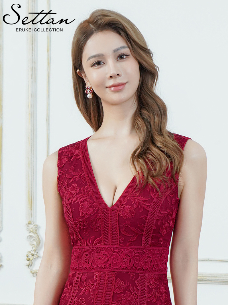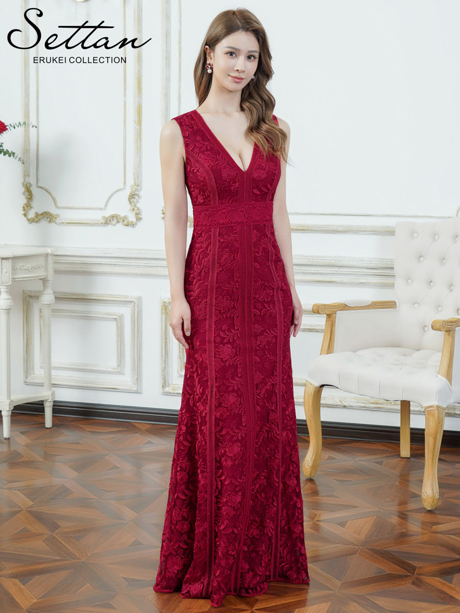 XS-Lサイズあり【SETTAN/セッタン】刺繍/ 総レース/ ノースリーブ/ Vネック/ ハイウエスト/ マーメイド/ ロングドレス / キャバドレス long[OF2] [LKS25338-R-2601]