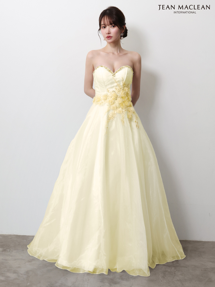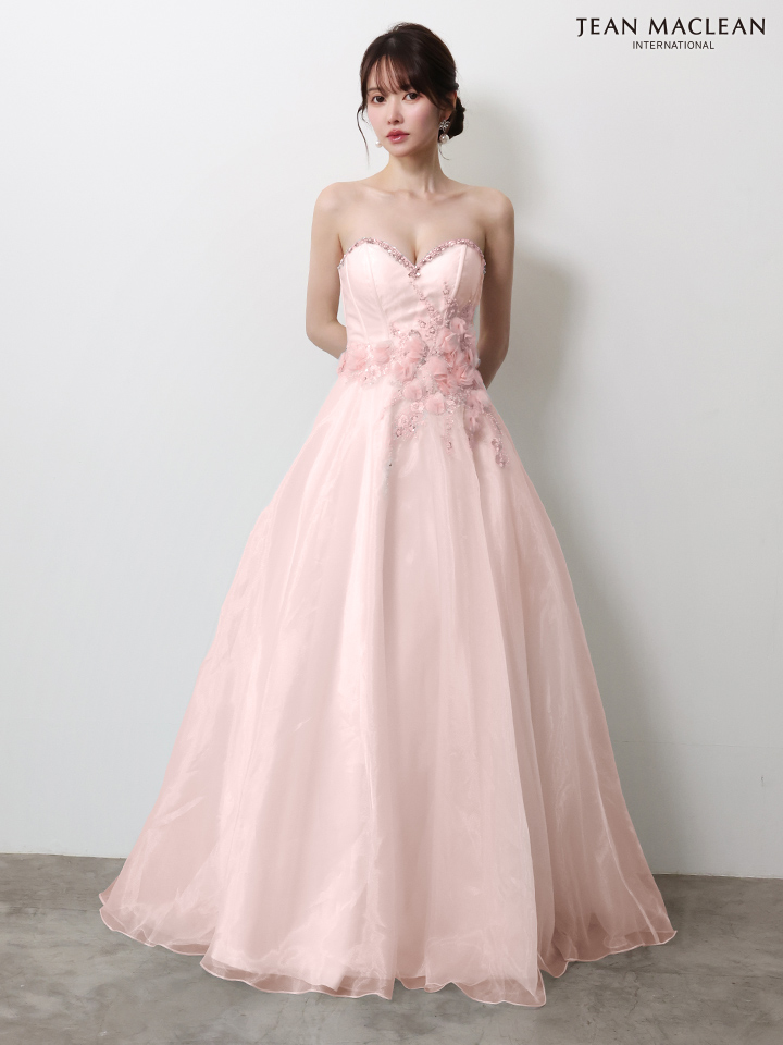 【JEAN MACLEAN/ジャンマクレーン】ビーズ刺繍/ ビジュー/ スパンコール/ 立体フラワー/ チュール/ ベアトップ/ フレア/ Aライン/ プリンセス/ ロングドレス/ キャバドレス long[OF2A]