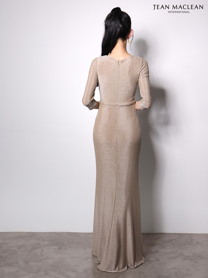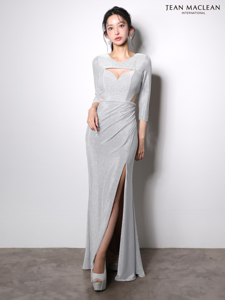 Lサイズあり【JEAN MACLEAN/ジャンマクレーン】ウエストカット/ バストカット/ スリット/ ラメニット/ タイト/ ロングドレス/ キャバドレス long[OF2A]