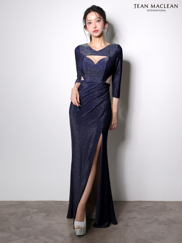Lサイズあり【JEAN MACLEAN/ジャンマクレーン】ウエストカット/ バストカット/ スリット/ ラメニット/ タイト/ ロングドレス/ キャバドレス long[OF2A] [51001-JM-BZ-2601]
