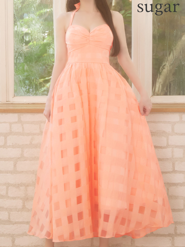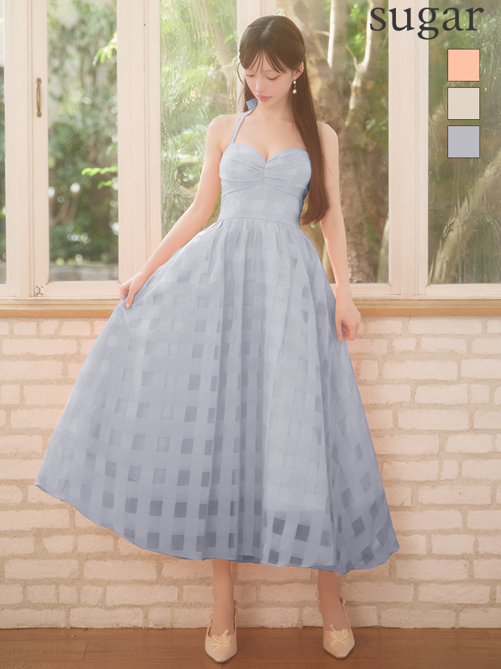 - > Lサイズあり【DEA./ディア】ギンガムチェック/ オーガンジー/ フレア/ ロング/ ワンピース/ ミモレ丈/ マキシ丈/ ミディアムドレス/ キャバドレス long[OF08]