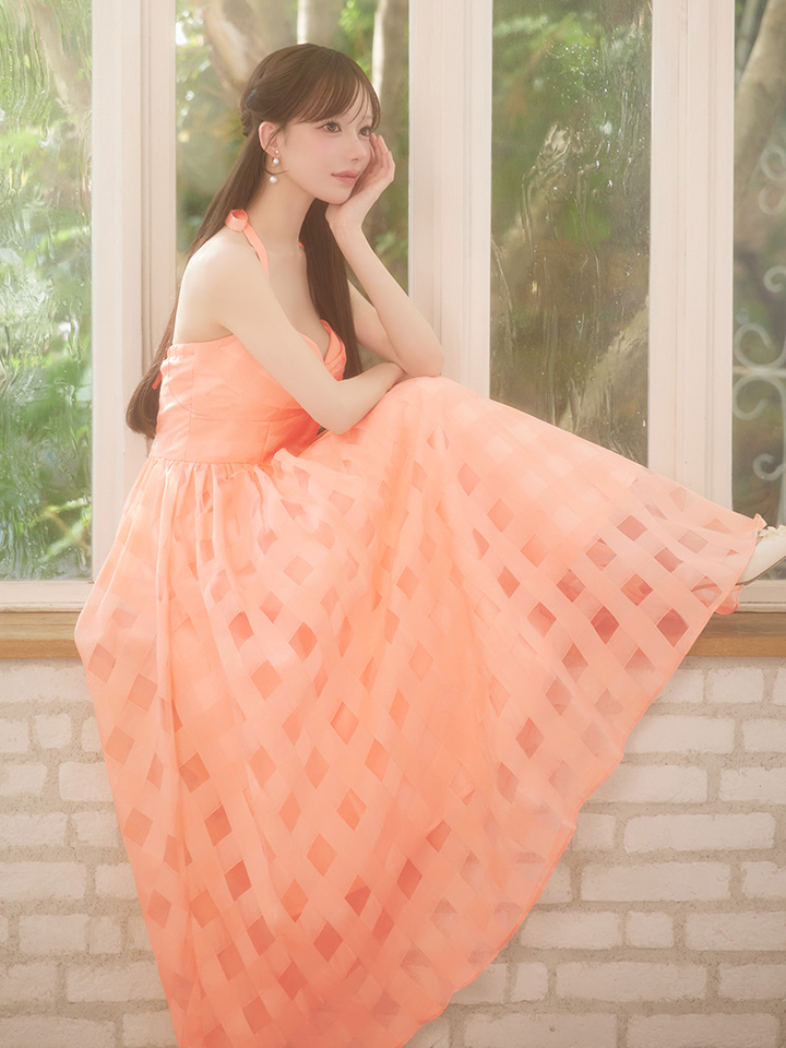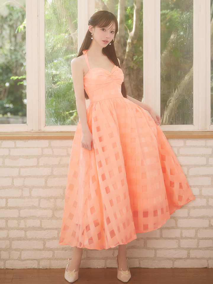 Lサイズあり【DEA./ディア】ギンガムチェック/ オーガンジー/ フレア/ ロング/ ワンピース/ ミモレ丈/ マキシ丈/ ミディアムドレス/ キャバドレス long[OF08] [DE3784-IV-S260109]