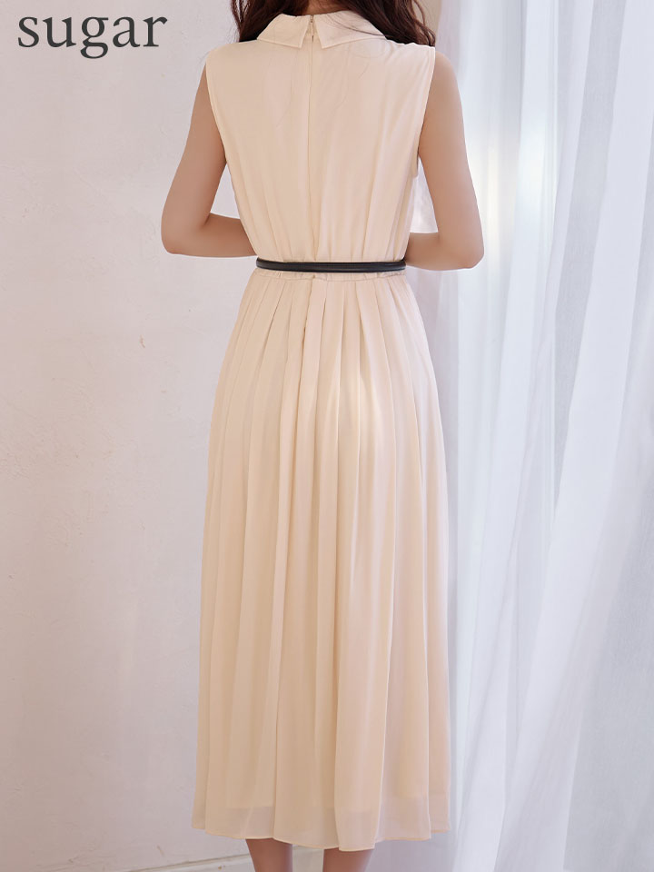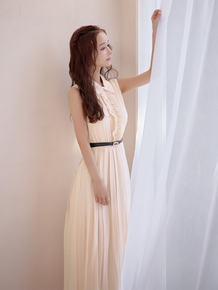 襟付きxフリルデザインが大人可愛いミディアムワンピースドレス