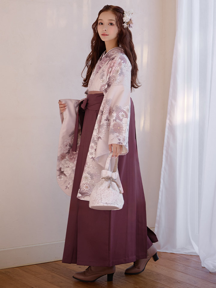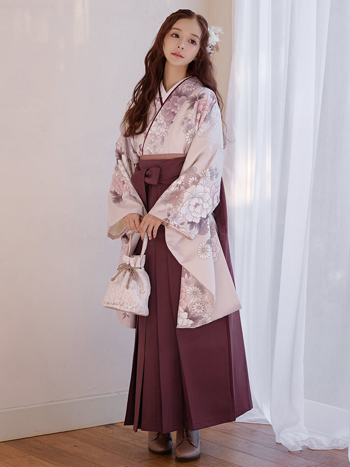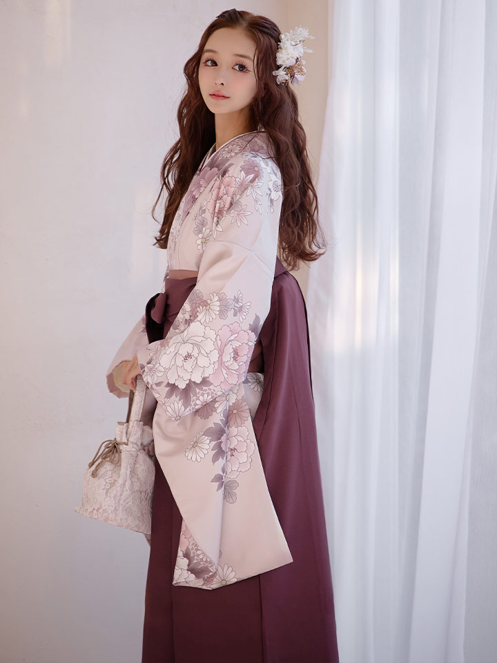 【予約商品 / 1月中旬発送予定】ピンク牡丹 くすみピンク二尺袖着物【卒業袴3点セット 二尺袖着物/帯/袴】 [HR-105-ok-P-F-26CC-260110]