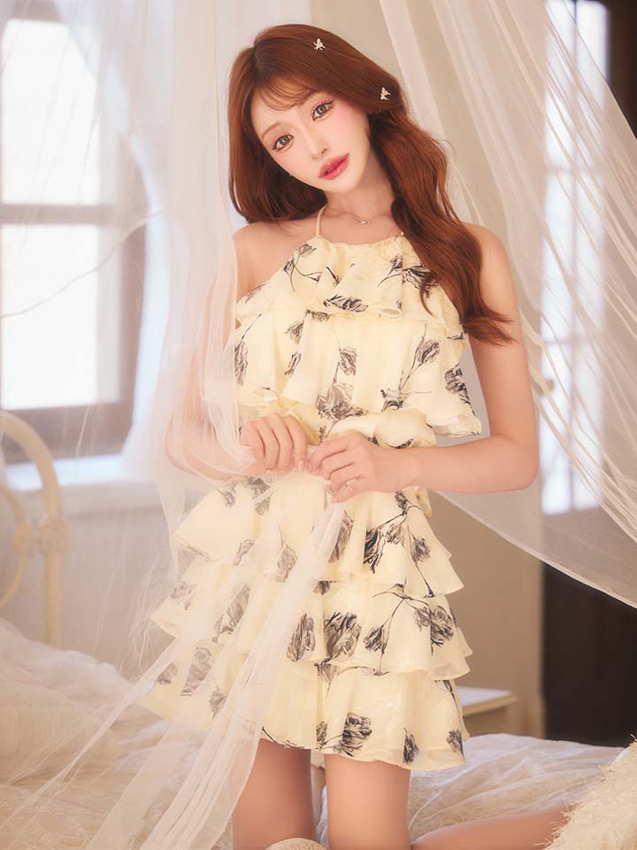 #キャバクラ #キャバ嬢 #キャバクラドレス #花柄 #シフォン #フレア #ホルターネック #フリル