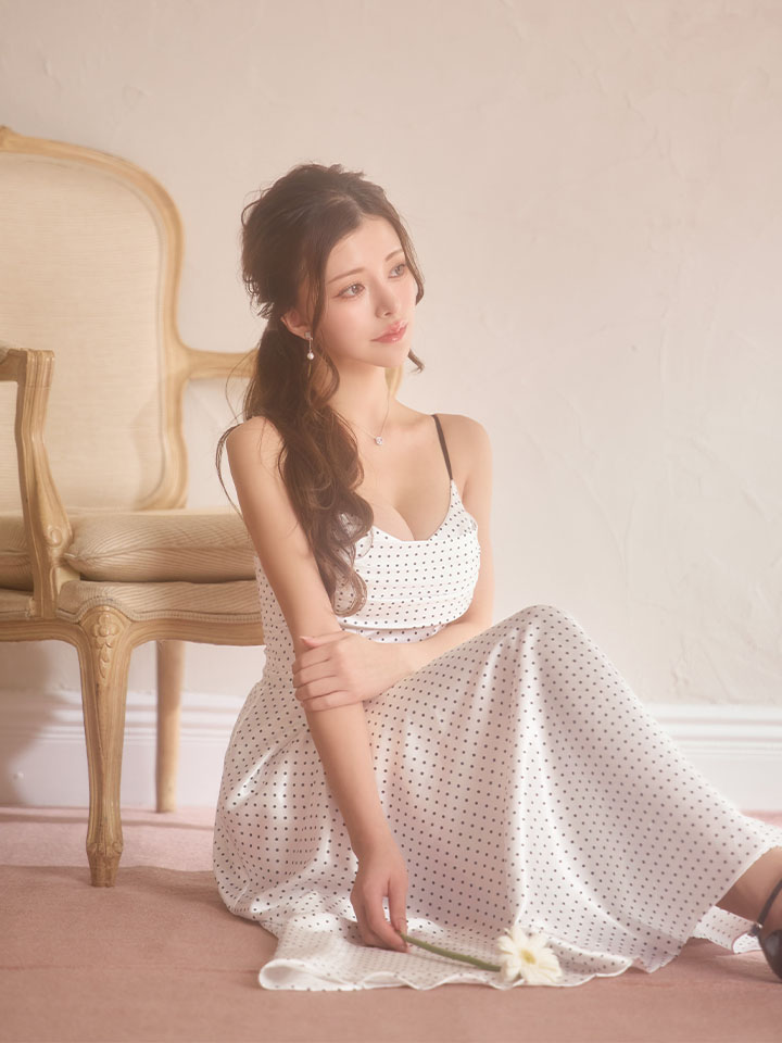 【ANGEL R/エンジェルアール】バストシャーリング/ ドット/ キャミソール/ フレア/ ロングドレス/ キャバドレス long[OF2]