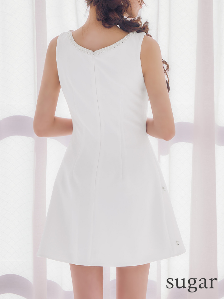 - > XSサイズあり【IRMA/イルマ】ネックビジュー/ ラインストーン/ ノースリーブ/ ワンカラー/シンプル/ フレア/ ミニドレス/ キャバドレス[OF2A]