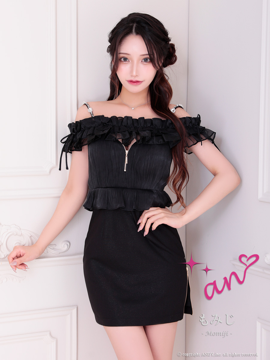 - > XSサイズあり【an /アン】ショルダービジュー/ フリル/ オフショル/ パフスリーブ/ バストジップ/ ペプラム/ タイト/ ミニドレス/ キャバドレス[OF05]