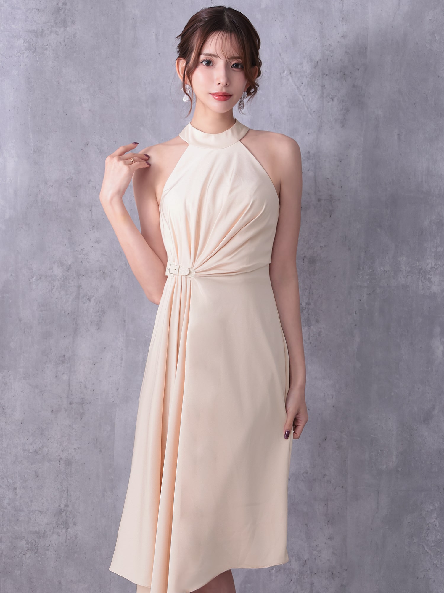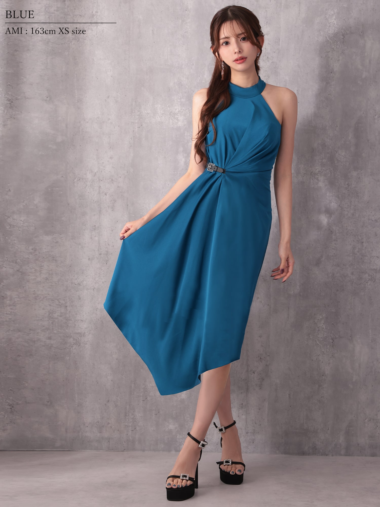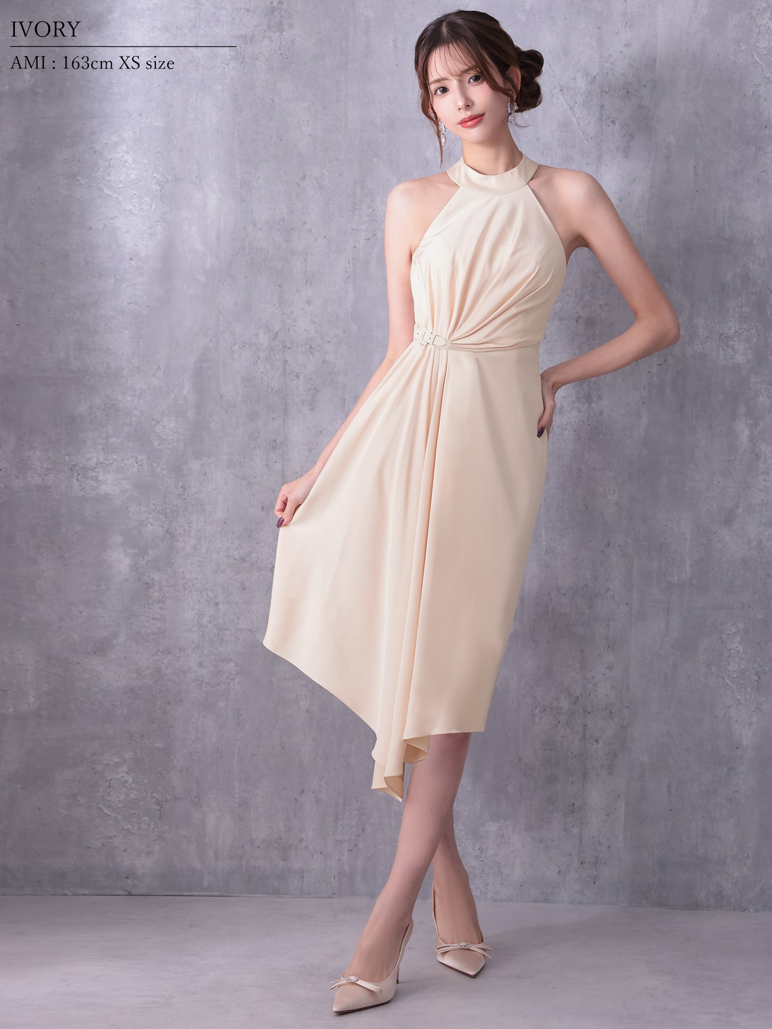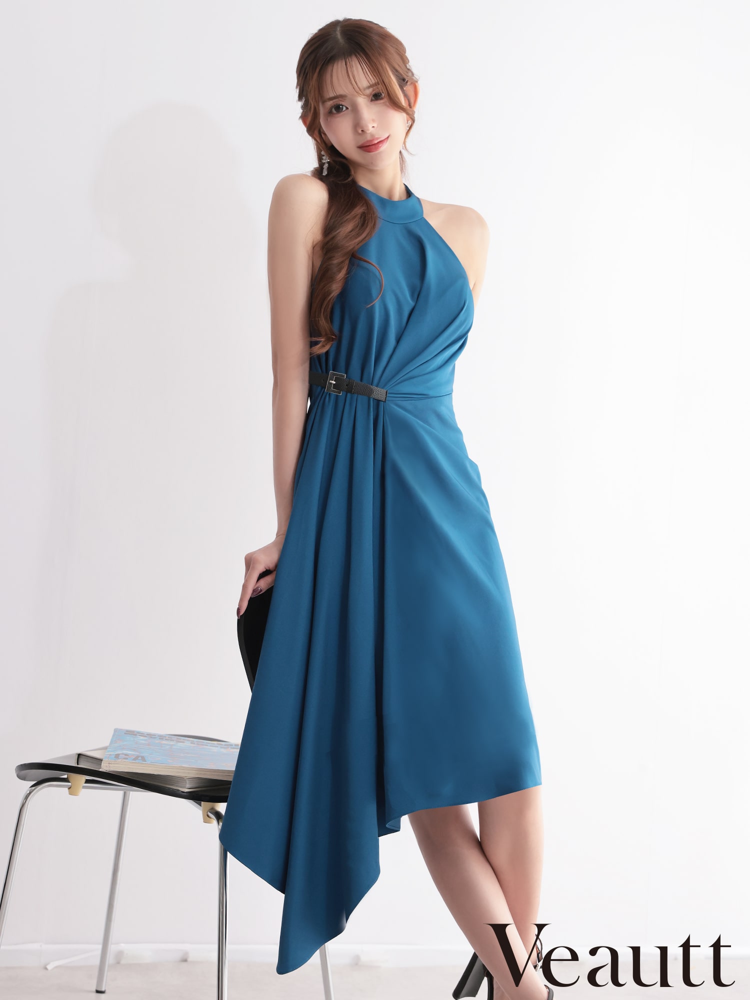 - > 【予約商品/1月中旬-1月下旬発送予定】XSサイズあり【Veautt/ヴュート】【OF05】ホルターネック/ ウエストベルト/ アシンメトリー/ フレア/ ミディアムドレス/ キャバドレス