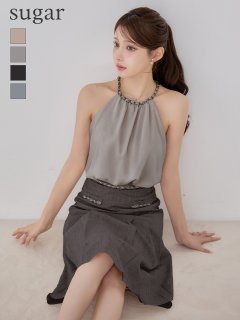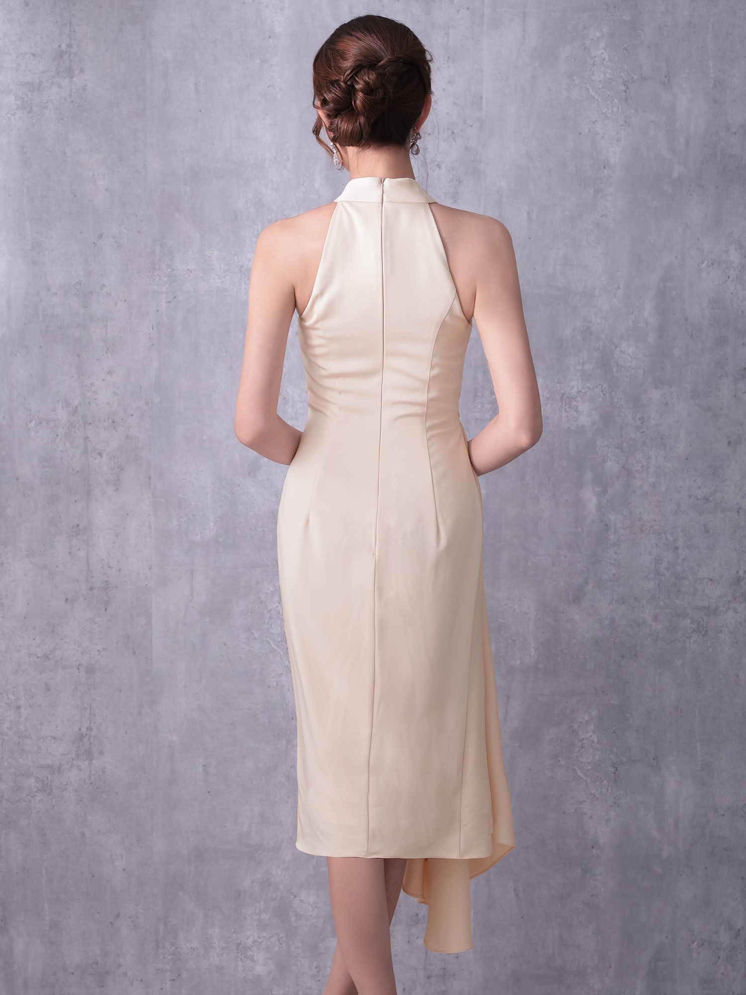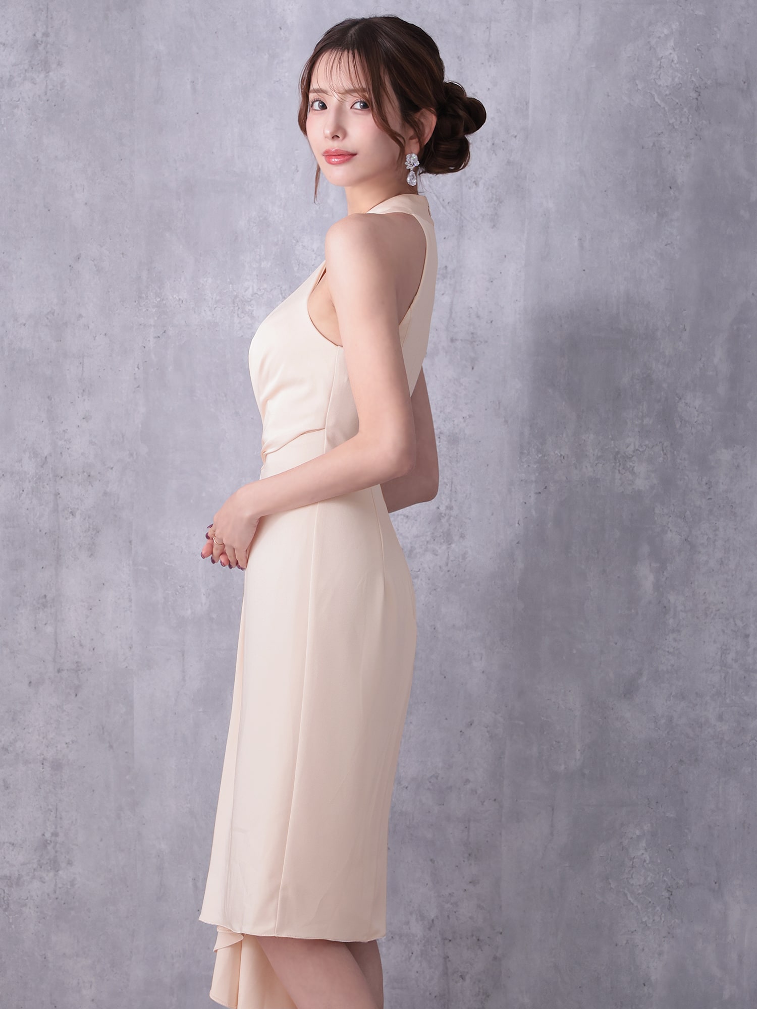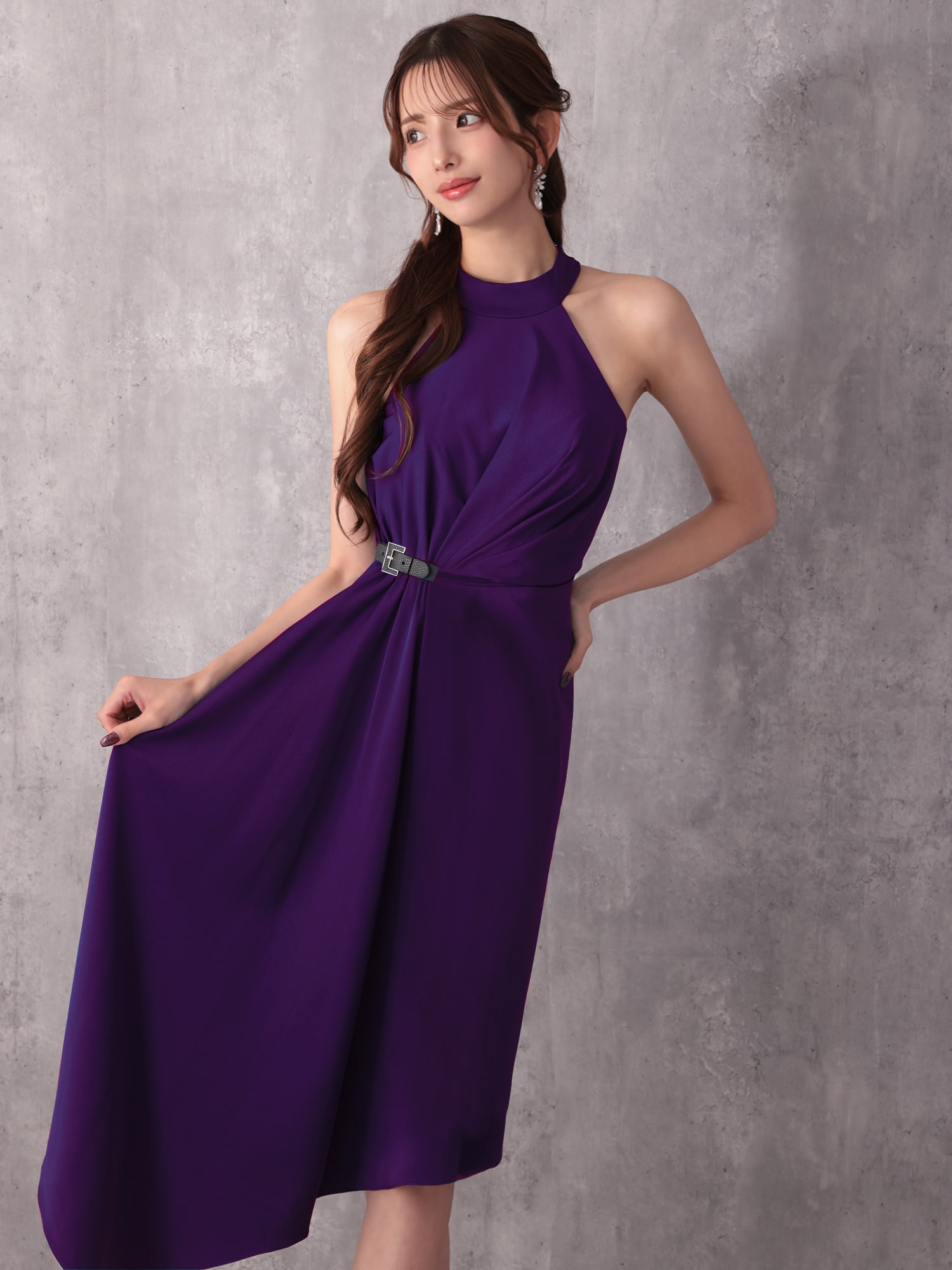 - > 【予約商品/1月中旬-1月下旬発送予定】XSサイズあり【Veautt/ヴュート】【OF05】ホルターネック/ ウエストベルト/ アシンメトリー/ フレア/ ミディアムドレス/ キャバドレス
