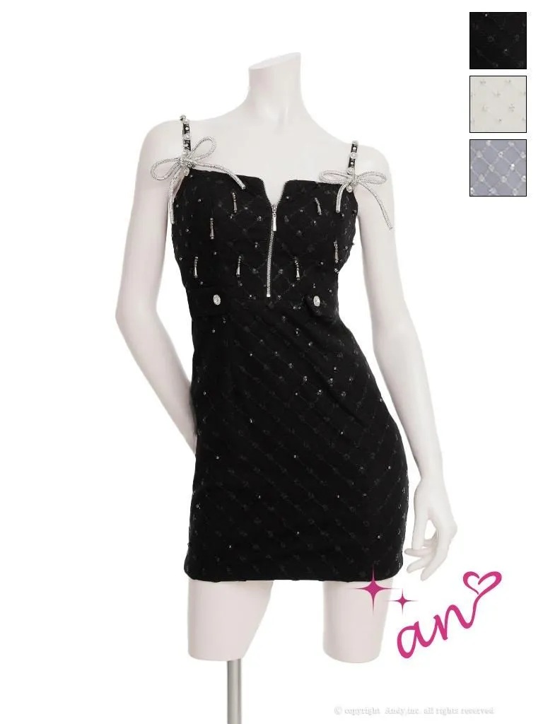 XSサイズあり【an /アン】ダイヤ柄/ ビジューリボン/ スパンコール/ キャミソール/ バストジップ/ タイト/ ミニドレス/ キャバドレス[OF05] [AOC4044-B-2601]