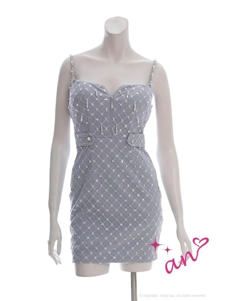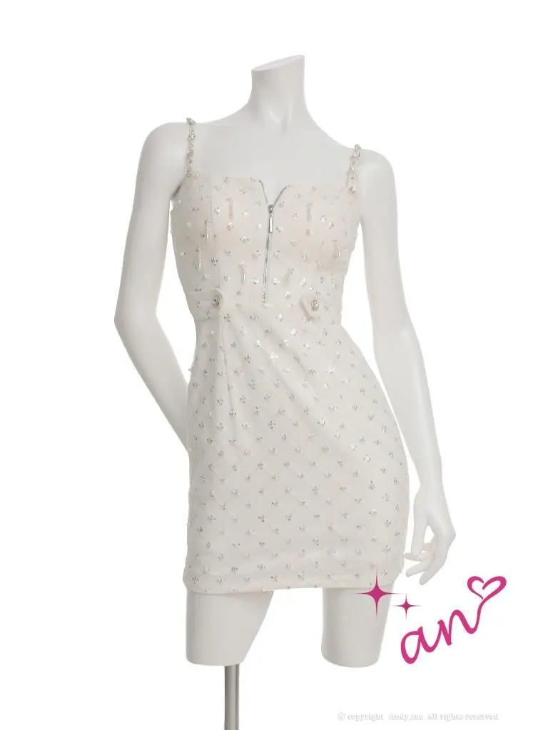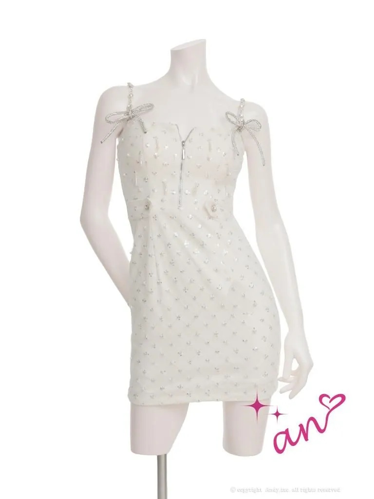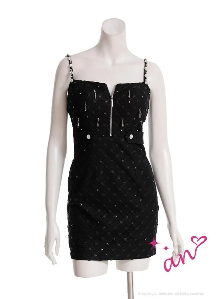 - > XSサイズあり【an /アン】ダイヤ柄/ ビジューリボン/ スパンコール/ キャミソール/ バストジップ/ タイト/ ミニドレス/ キャバドレス[OF05]