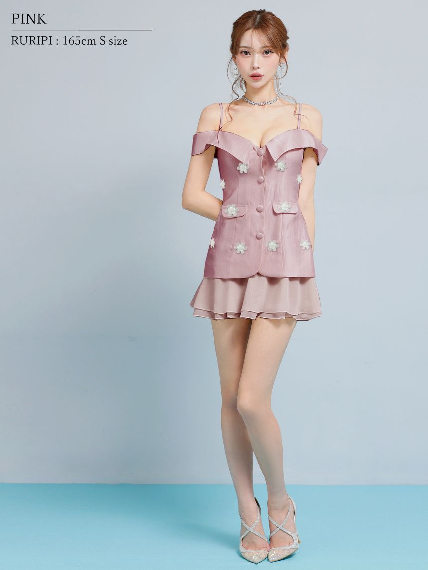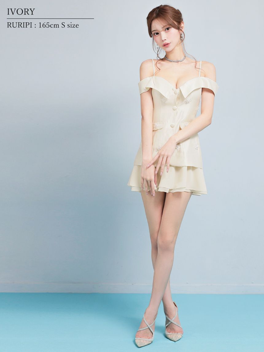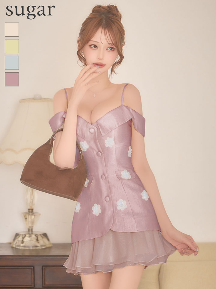 - > 【予約商品/1月上旬-1月中旬発送予定】XSサイズあり【ANGEL R/エンジェルアール】オフショルダー/ ボタン/ ポケット/ フラワー/ シフォン/ フレア/ マイクロミニドレス/ キャバドレス[OF2]