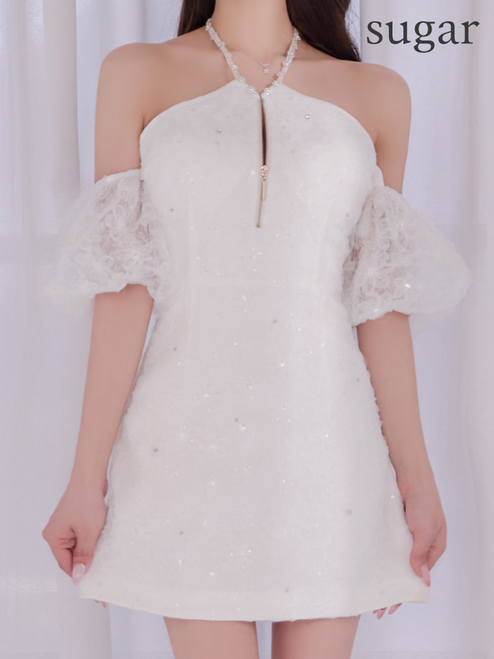 - > 【予約商品/1月下旬発送予定】XSサイズあり【ROBE de FLEURS/ローブドフルール】フラワーレース/ ラメチュール/ ホルター/ タイト/ ミニドレス/ キャバドレス[OF08]