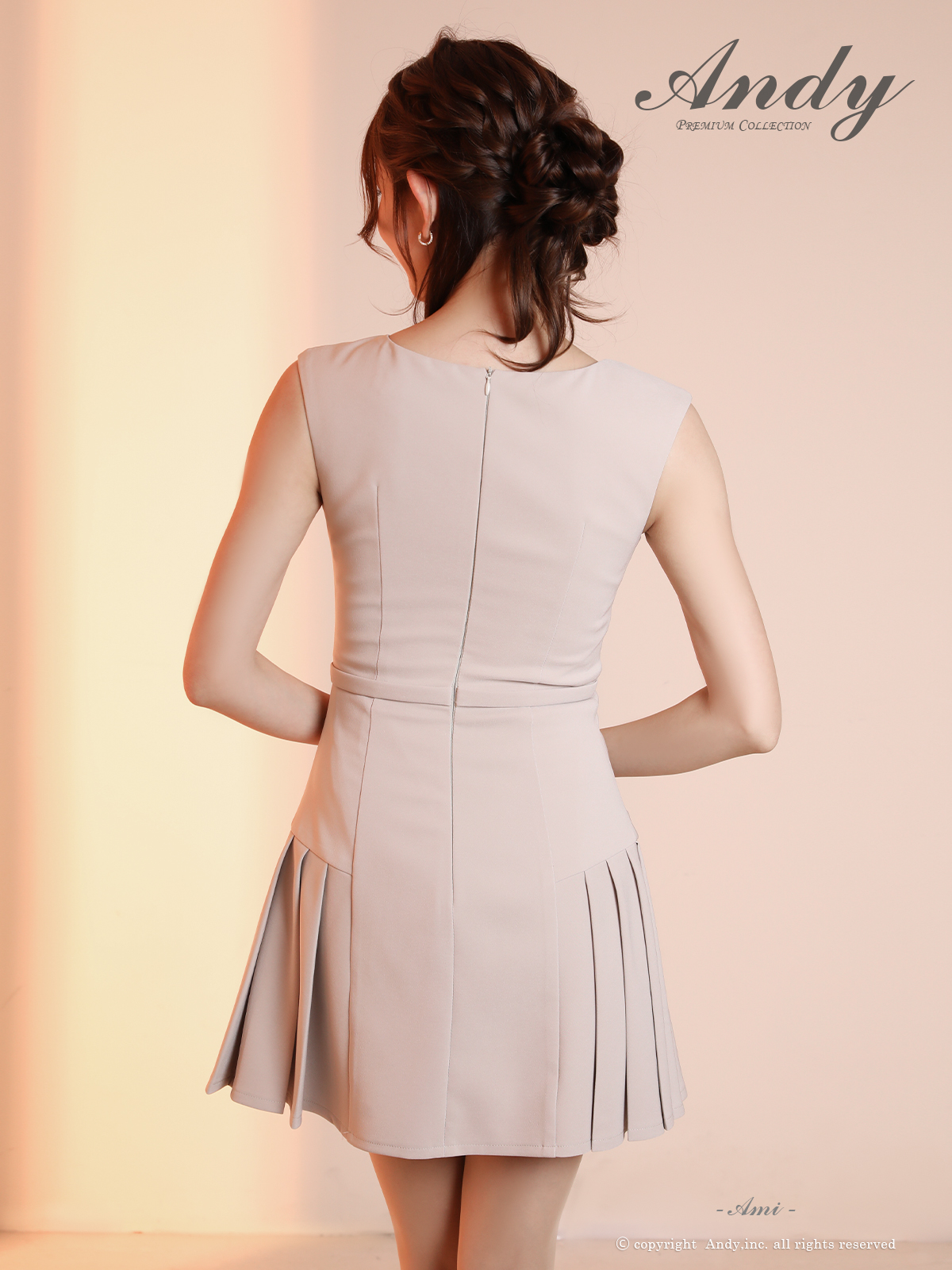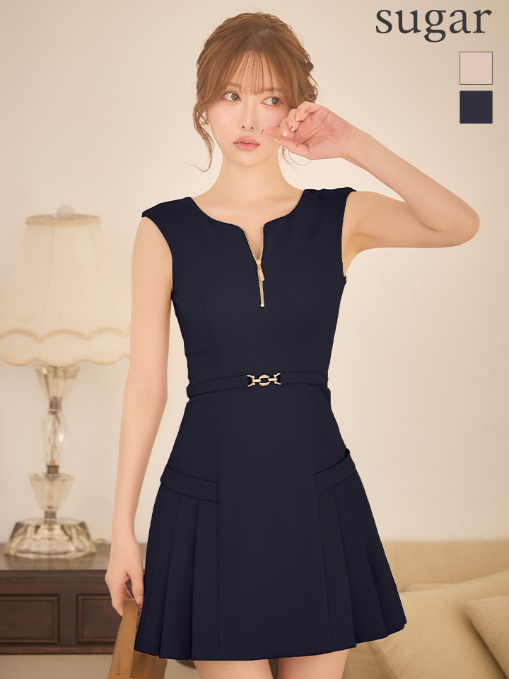 XSサイズあり【ANDY/アンディ】シンプル/ ノースリーブ/ ボートネック/ フロントジッパー/ ウエストベルト/ プリーツ/ フレア/ ミニドレス/ キャバドレス[OF05] [ON3039-BE-S260113]