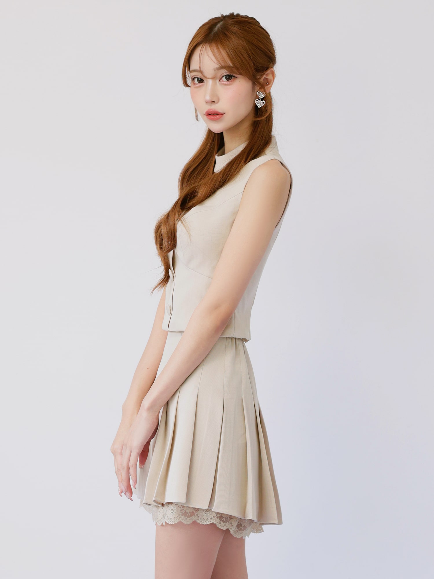チョーカーデザイン風のネックラインが印象的なトップスと、上品なミニ丈スカートの上下セットドレス。
