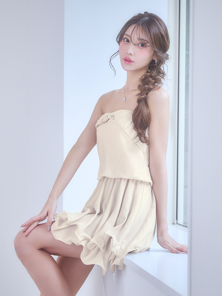 - > XSサイズあり【IRMA/イルマ】フリル/ スパーク/ ワンカラー/ ベア/ フレア/ ミニドレス/ キャバドレス[OF2A]