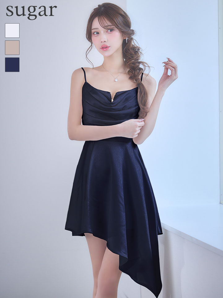 XSサイズあり【ANDY/アンディ】アシンメトリー/ バストジップ/ ドレープ/ キャミ/ サテン/ ワンカラー/ フレア/ ミニドレス/ キャバドレス[OF05]