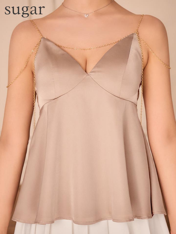 - > 【予約商品/1月下旬発送予定】XSサイズあり【Glossy/グロッシー】チェーン/ サテン/ キャミソール/ セットアップ/ フレア/ ミニドレス/ キャバドレス[OF08]