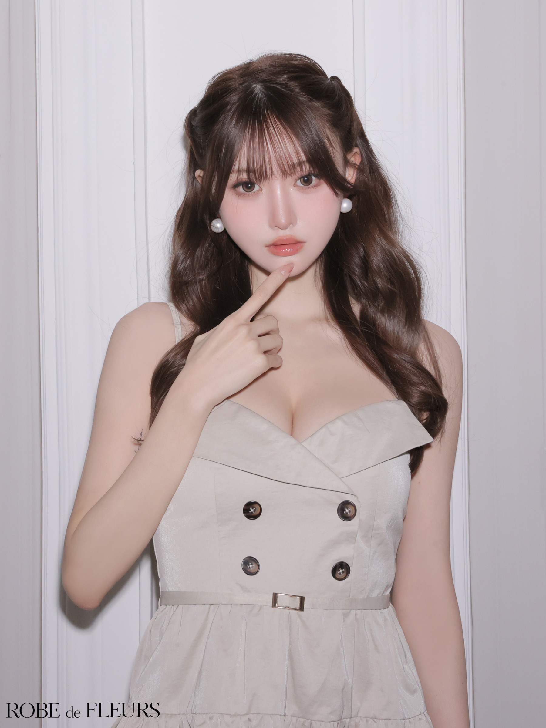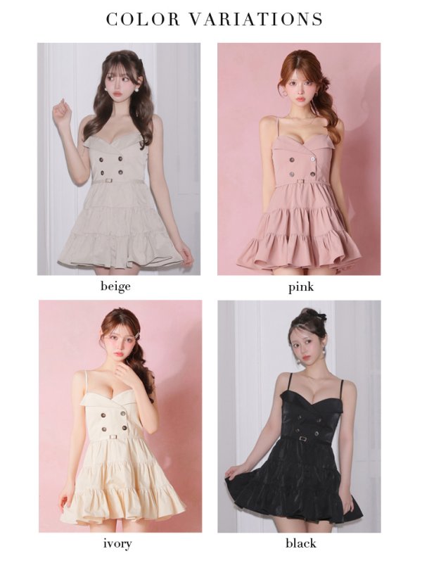 - > 【予約商品/2月中旬発送予定】XSサイズあり【ROBE de FLEURS/ローブドフルール】光沢ツイル/ダブルボタン/ ティアード/ キャミ/ フレア/ ミニドレス/ キャバドレス[OF08]