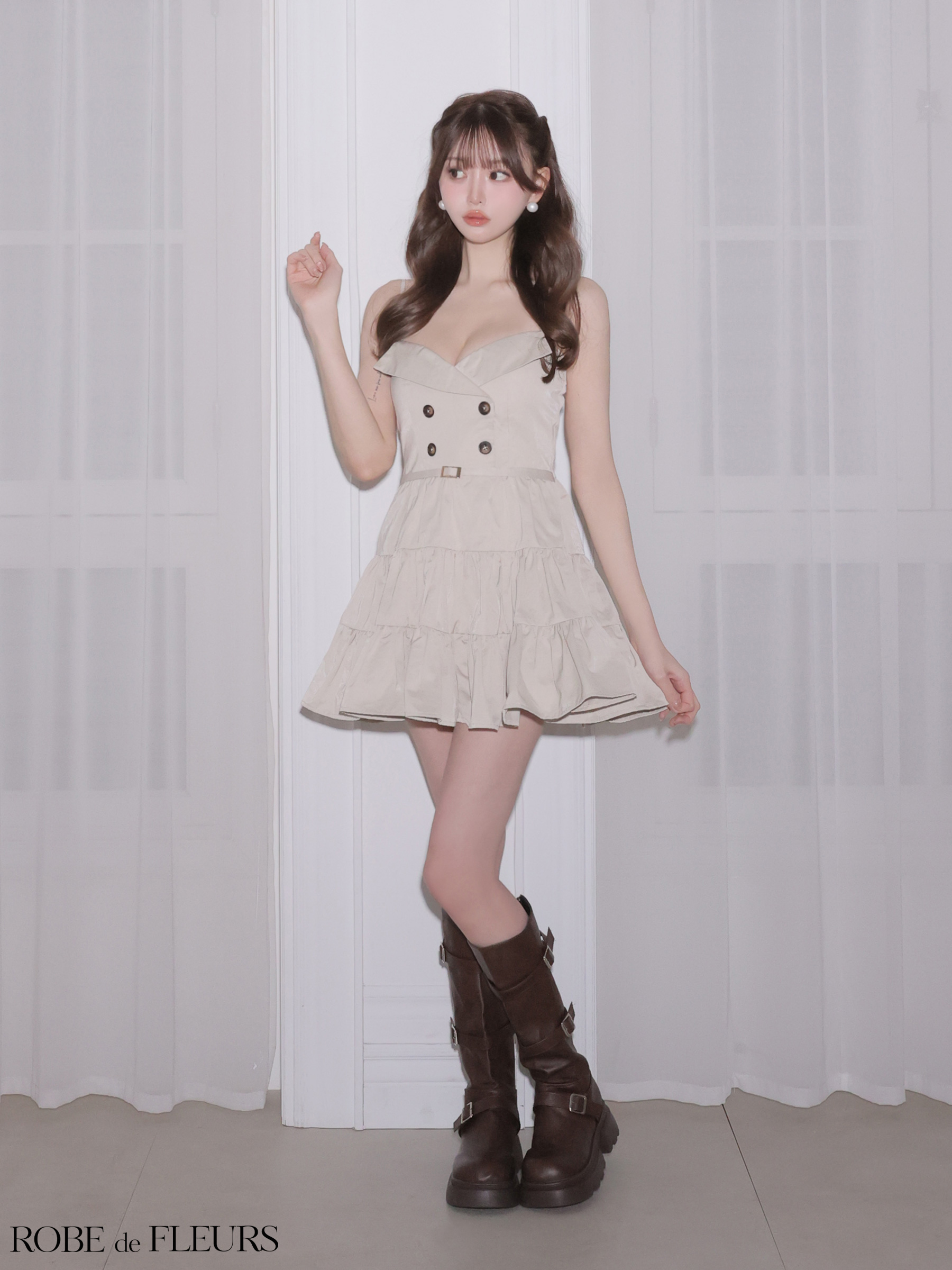トレンチ風のデザインが春らしい大人かわいいミニドレス。