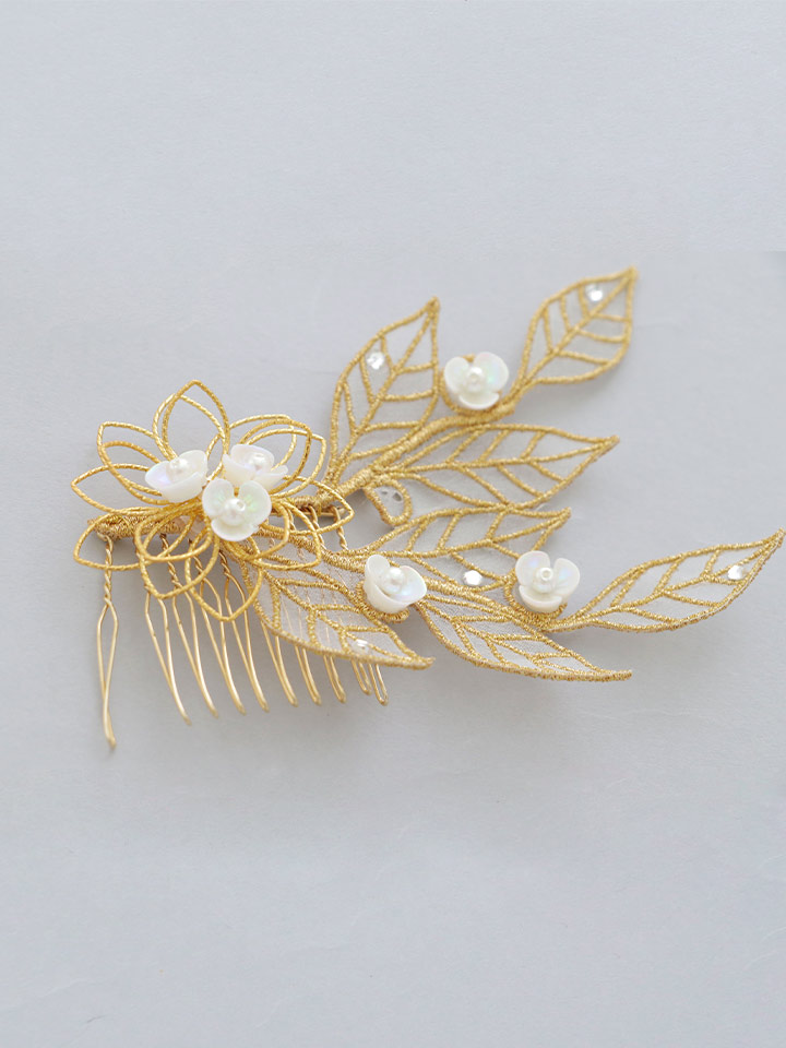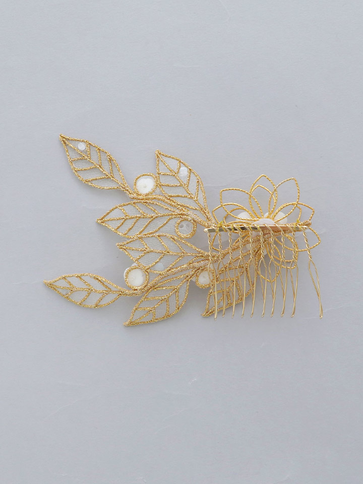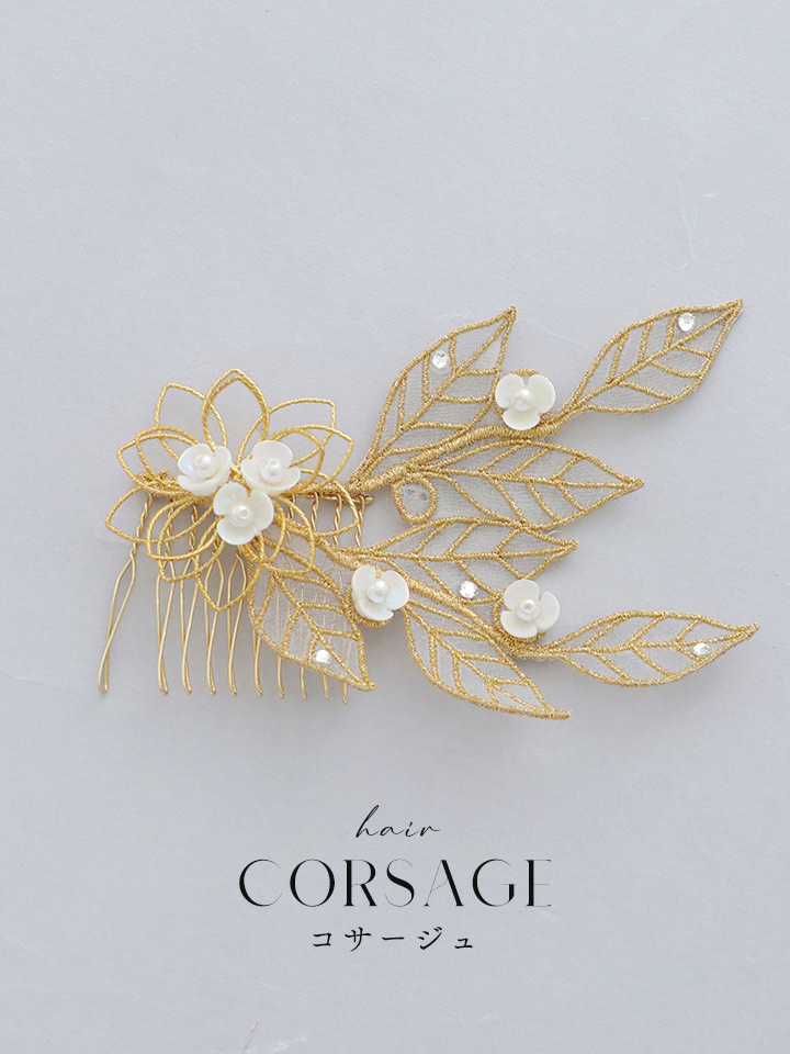 ゴールド リーフ 葉っぱ コーム式 フラワー コサージュ