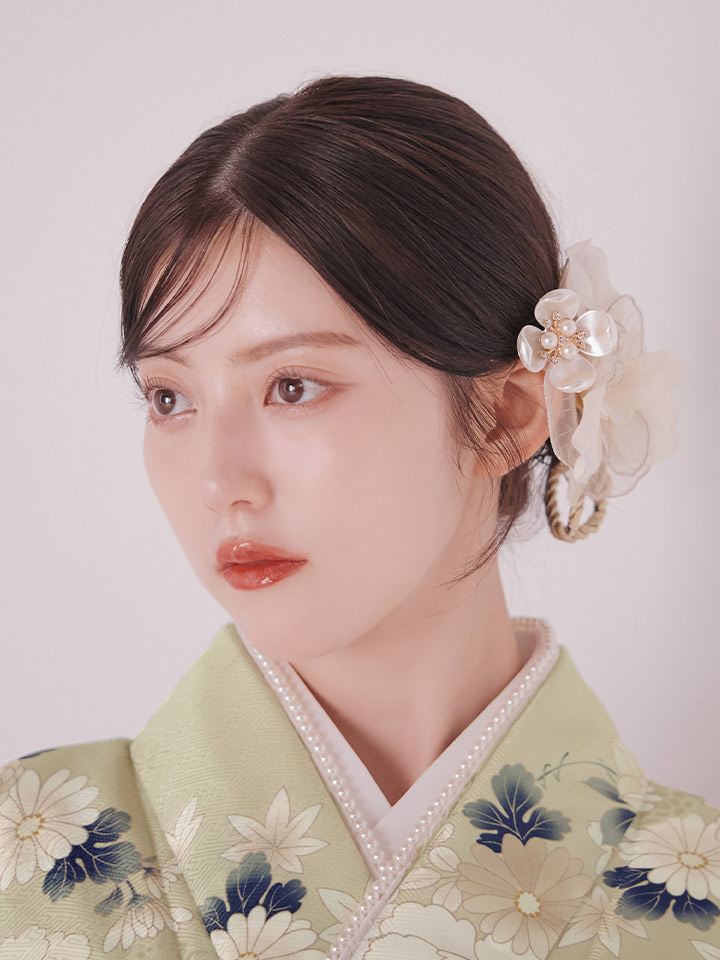 【卒業袴小物】オーガンジー×パールアーティフィシャルフラワーコサージュ【1カラー】