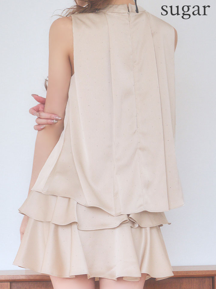 XSサイズあり【an /アン】ラインストーン/ バストジップ/ ノースリーブ/ ティアードフリル/ セットアップ/ フレア/ ミニドレス/ キャバドレス[OF05] [AOC4030-CHPGD-S260114]