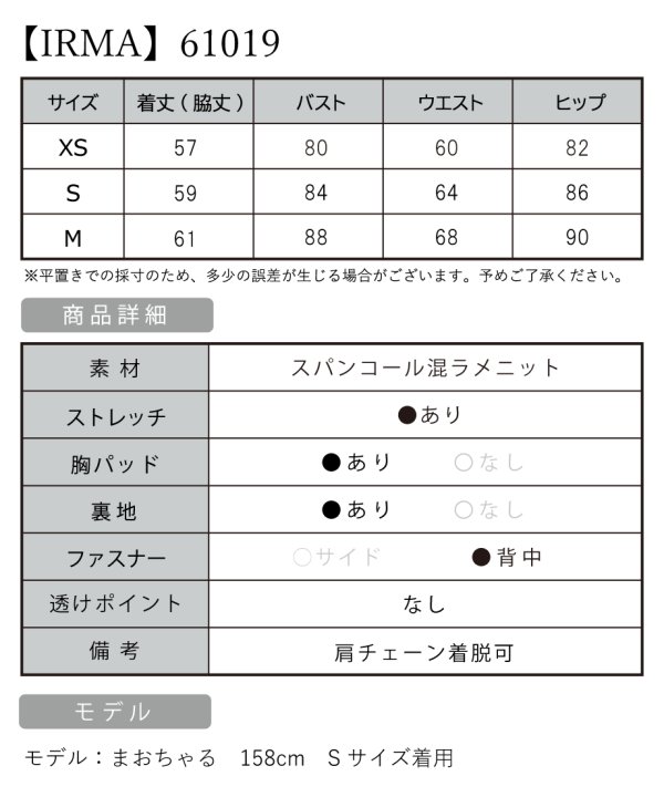 【予約商品/1月下旬発送予定】XSサイズあり【IRMA/イルマ】ラメニット/ ビジュー/ ウエストカット/ キャミ/ チェーン/ ストレッチ/ タイト/ ミニドレス/ キャバドレス[OF2A]