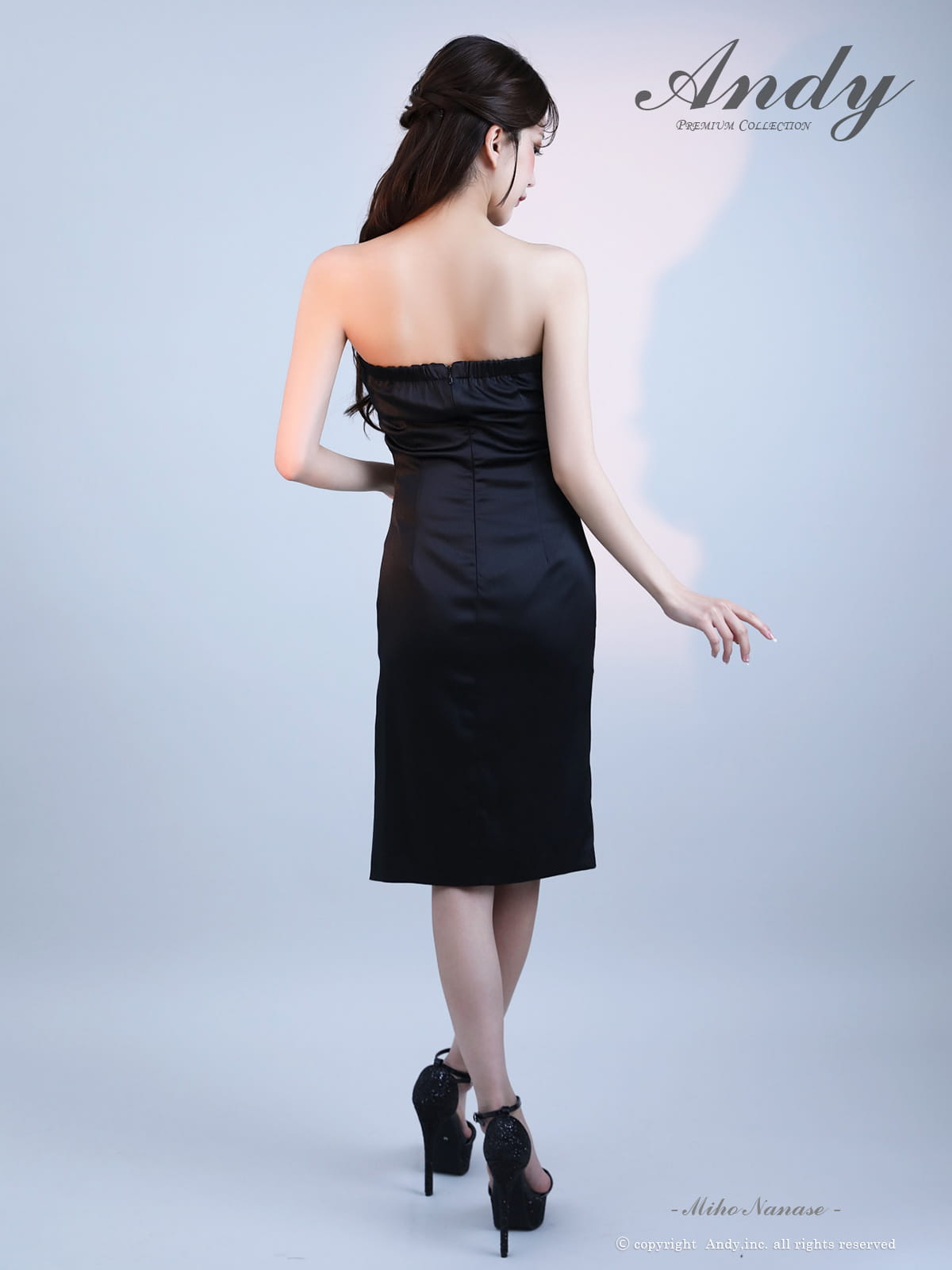 - > XSサイズあり【ANDY/アンディ】シンプル/ ワンカラー/ ベア/ ひざ丈/ タック/ タイト/ スリット/ ミディアムドレス/ キャバドレス[OF05]