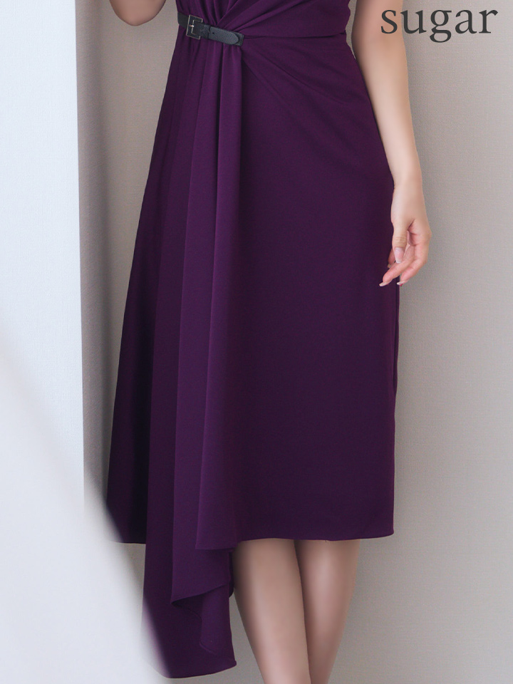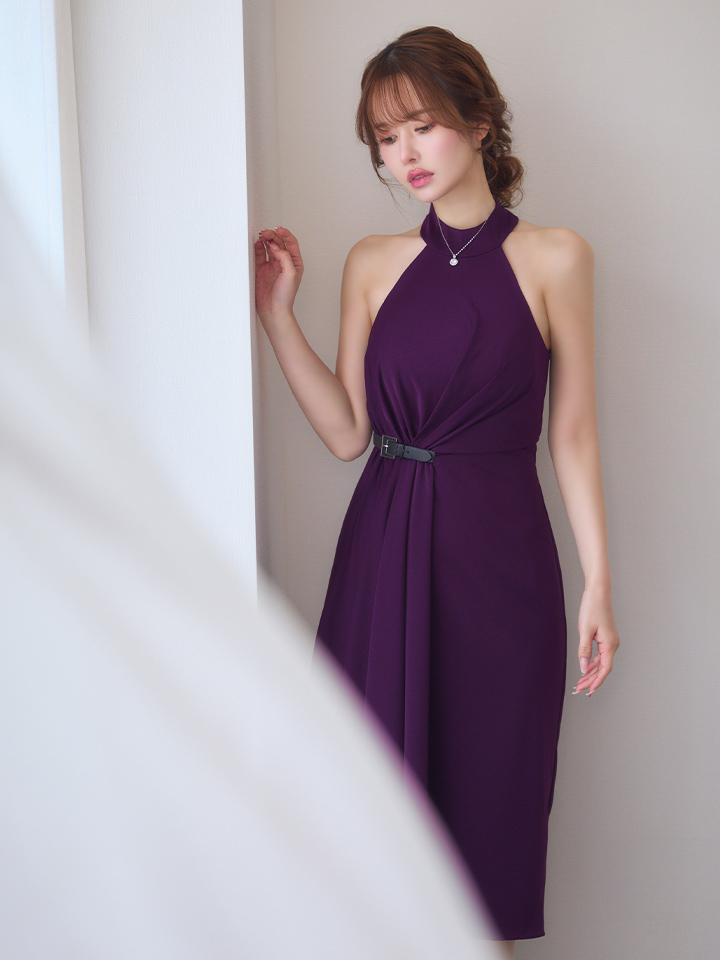 - > 【予約商品/1月中旬-1月下旬発送予定】XSサイズあり【Veautt/ヴュート】【OF05】ホルターネック/ ウエストベルト/ アシンメトリー/ フレア/ ミディアムドレス/ キャバドレス